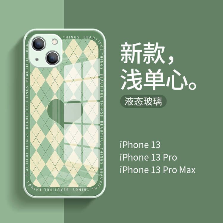 iPhone13玻璃手机壳苹果13pro格子爱心12/11小清新xs/xsmax防摔潮