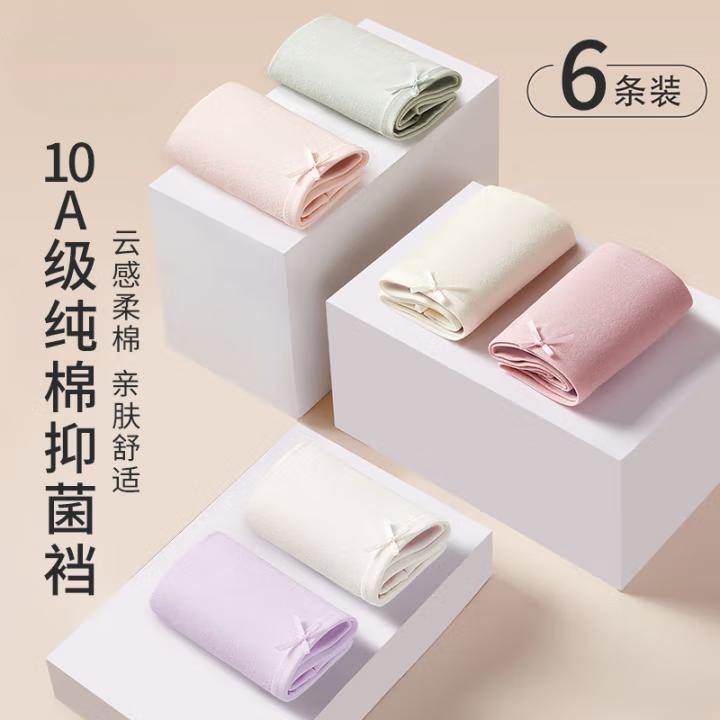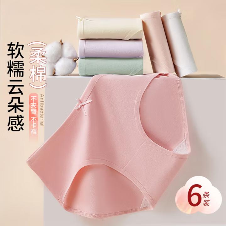 6条女士内裤女纯棉10A抑菌底档透气舒适中腰三角裤短裤