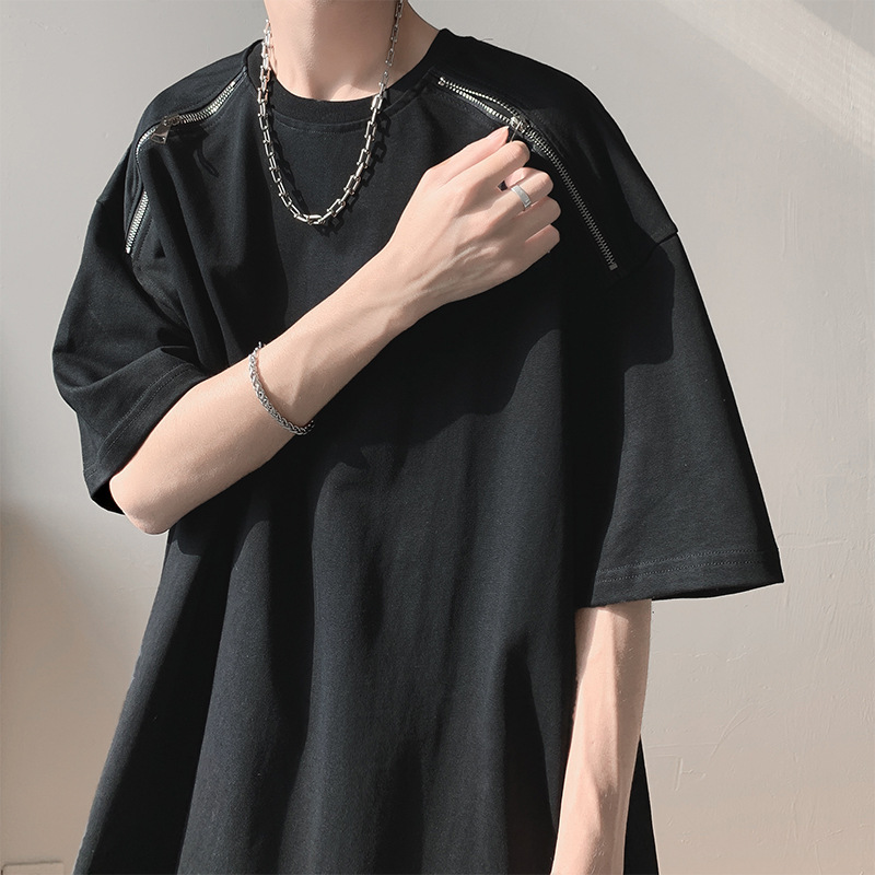 夏季新款美式短袖T恤男高街潮牌痞帅拉链小众设计感宽松休闲半袖