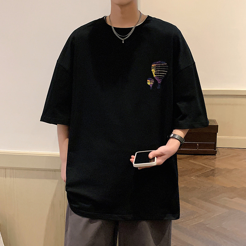 夏季新品高品质男士纯棉T恤宽松圆领港风潮牌休闲百搭T恤短袖