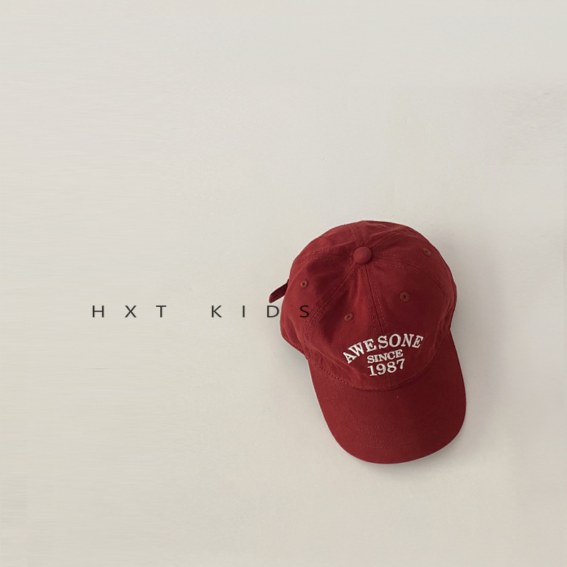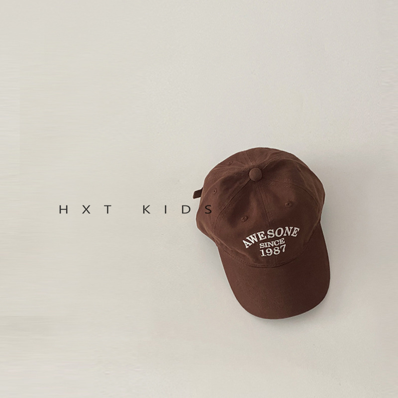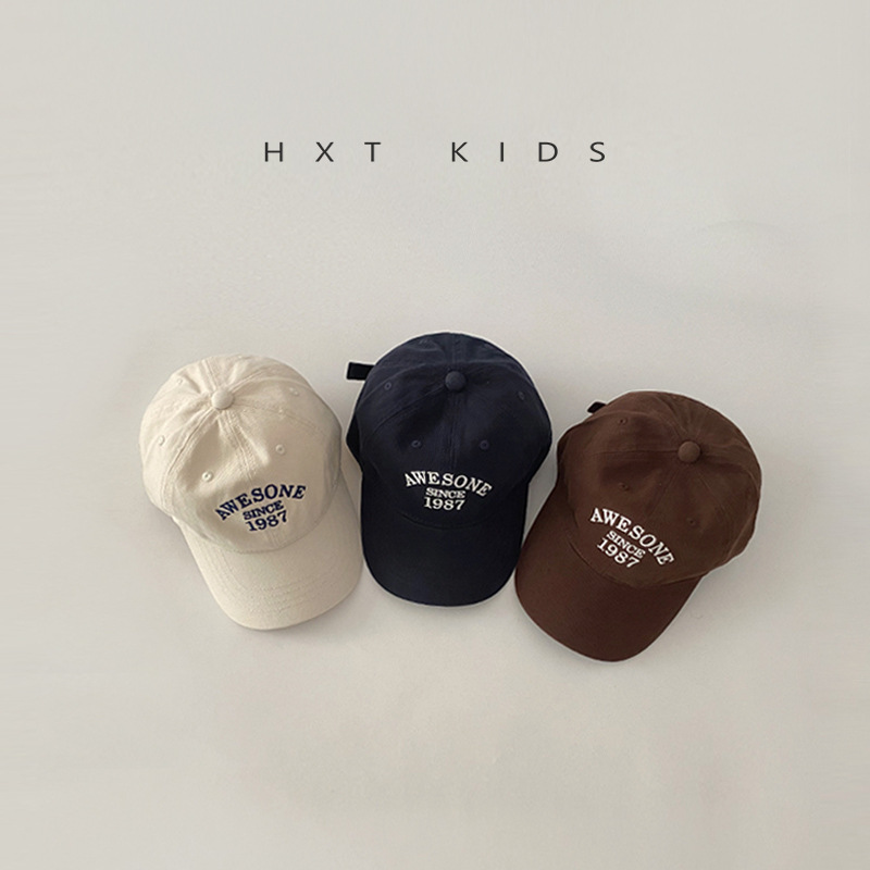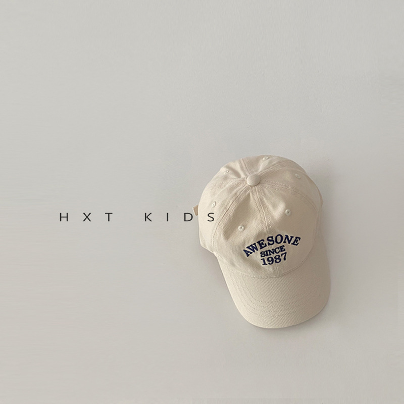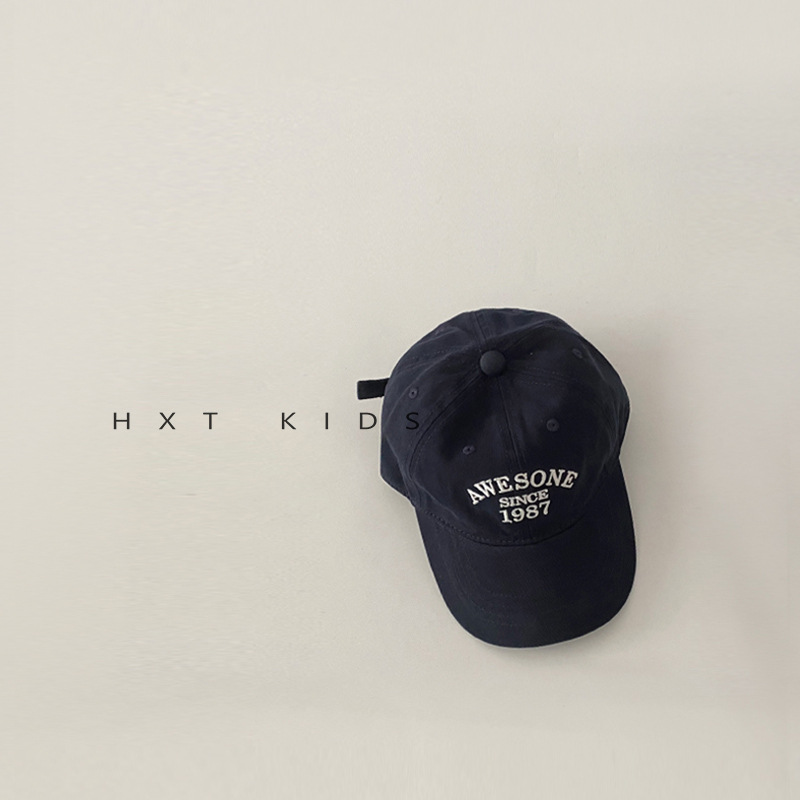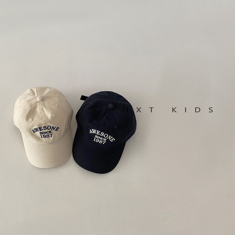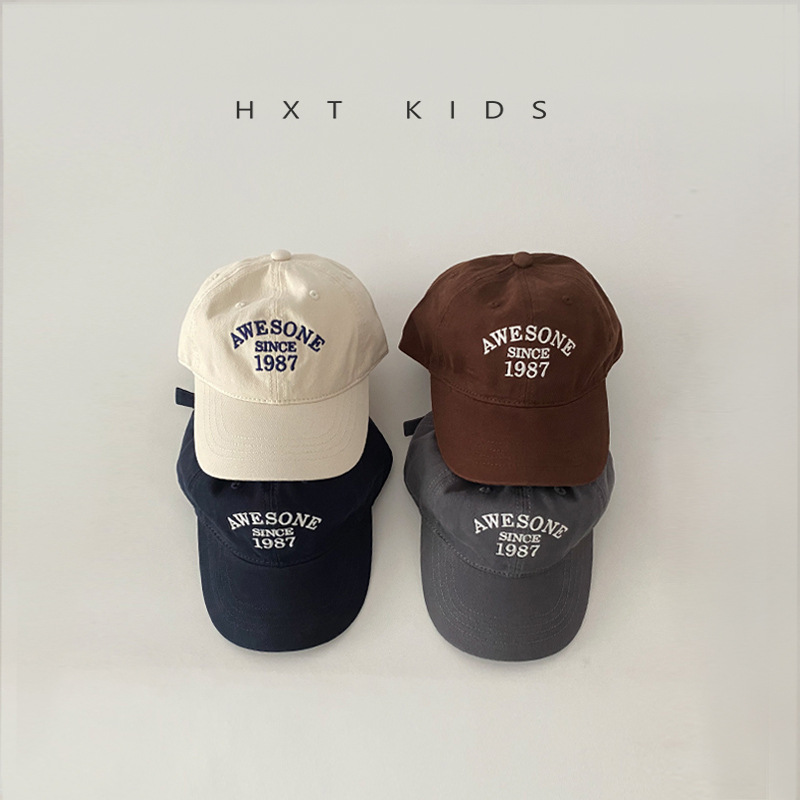 儿童鸭舌帽秋天小字母刺绣洋气软顶湾檐帽子ins夏季宝宝棒球帽潮
