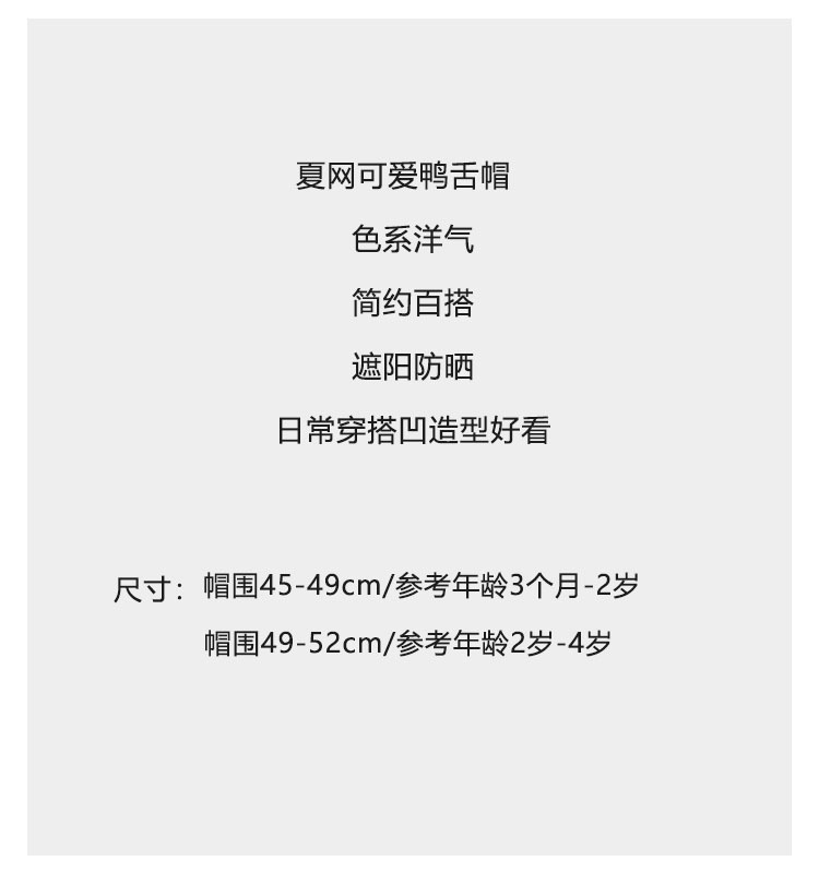 宝宝帽子夏季薄款透气网眼鸭舌帽可爱超萌防晒男女童遮阳棒球帽潮