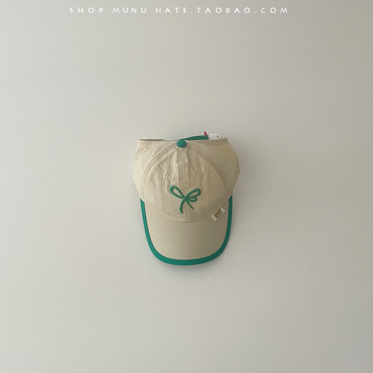蝴蝶结拼边空顶鸭舌 绿