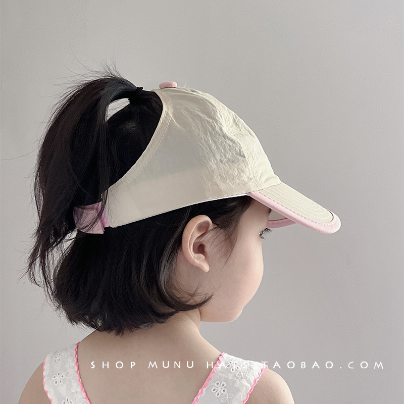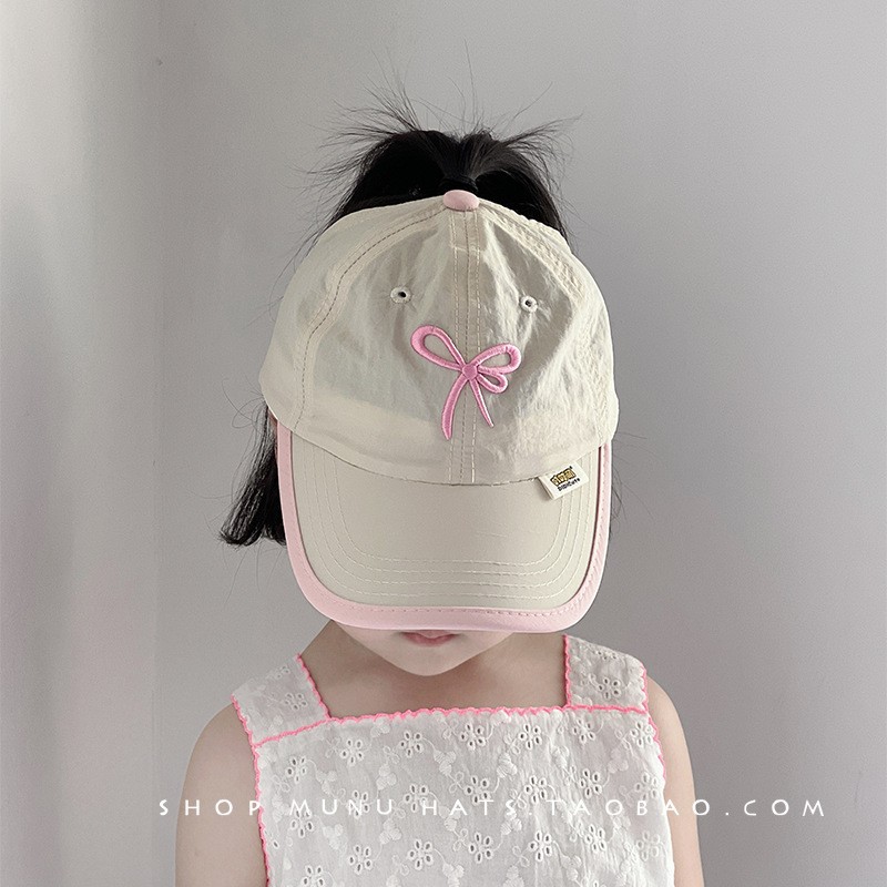 蝴蝶结拼边空顶鸭舌 粉