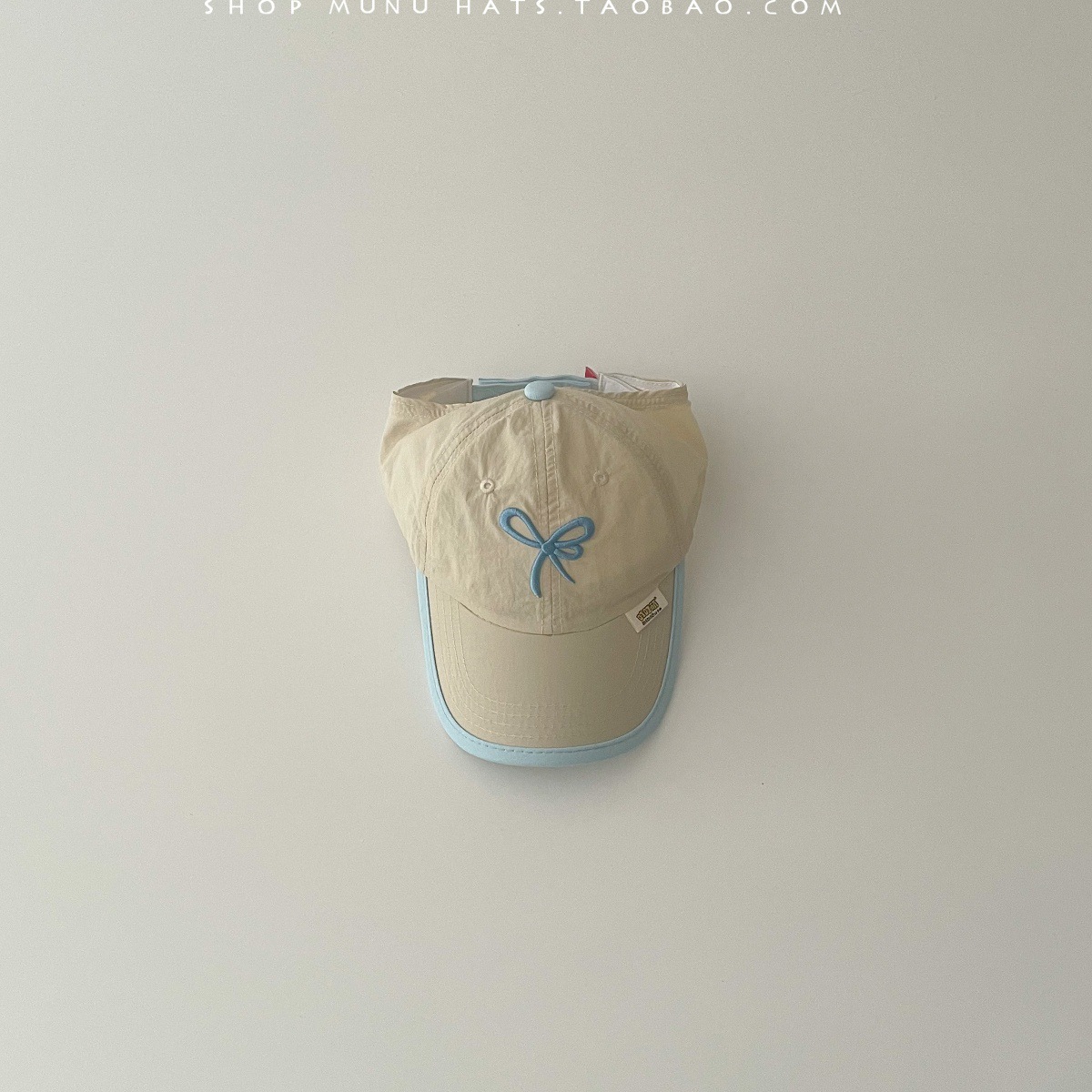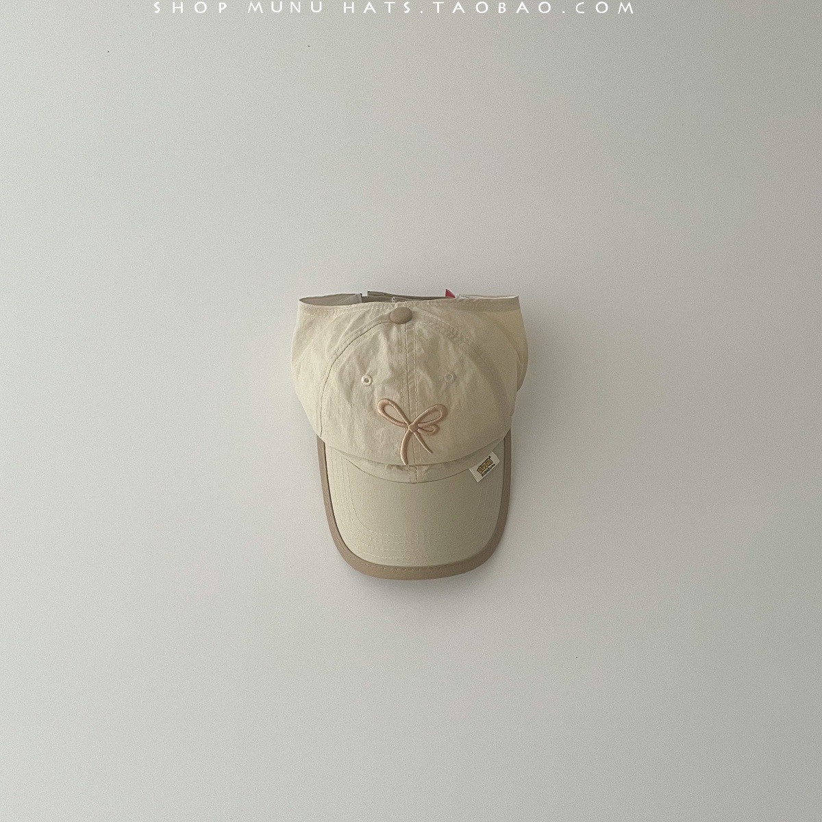 蝴蝶结拼边空顶鸭舌 卡其