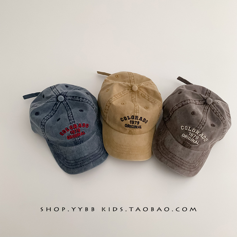 儿童帽子春秋薄款水洗做旧复古鸭舌帽男女宝宝遮阳防晒韩版棒球帽