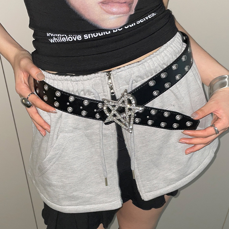 美式Y2K重工五角星爱心腰带女小众个性设计镶嵌皮带配牛仔裤配饰