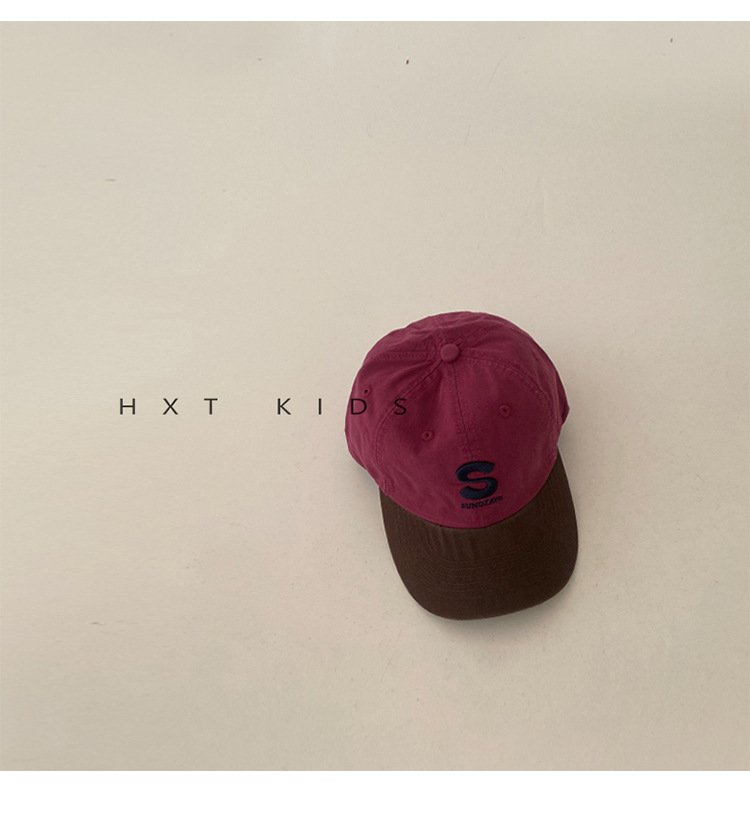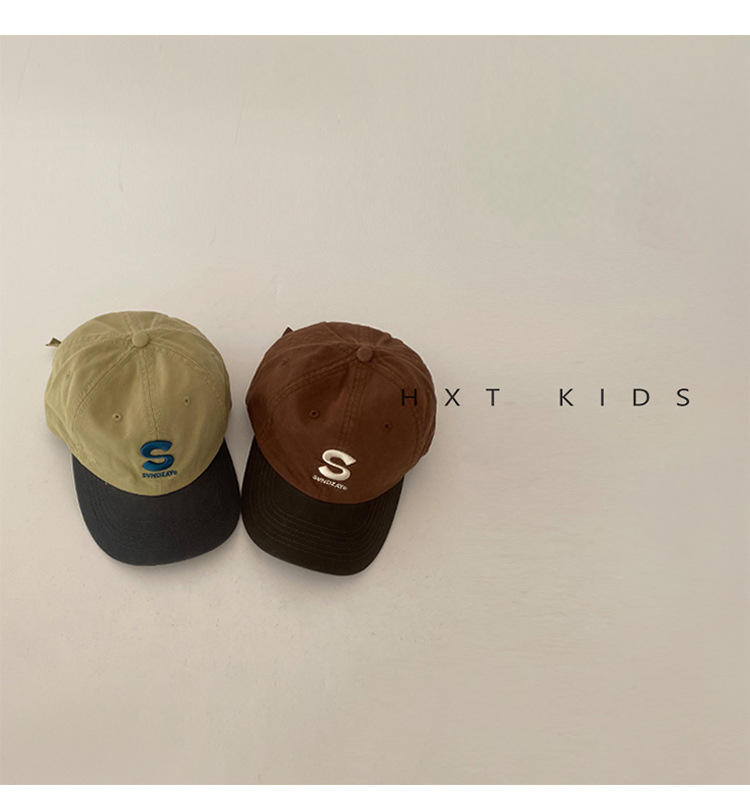 儿童鸭舌帽春秋季S字母刺绣拼色软顶棒球帽潮童宝宝ins韩国帽子潮