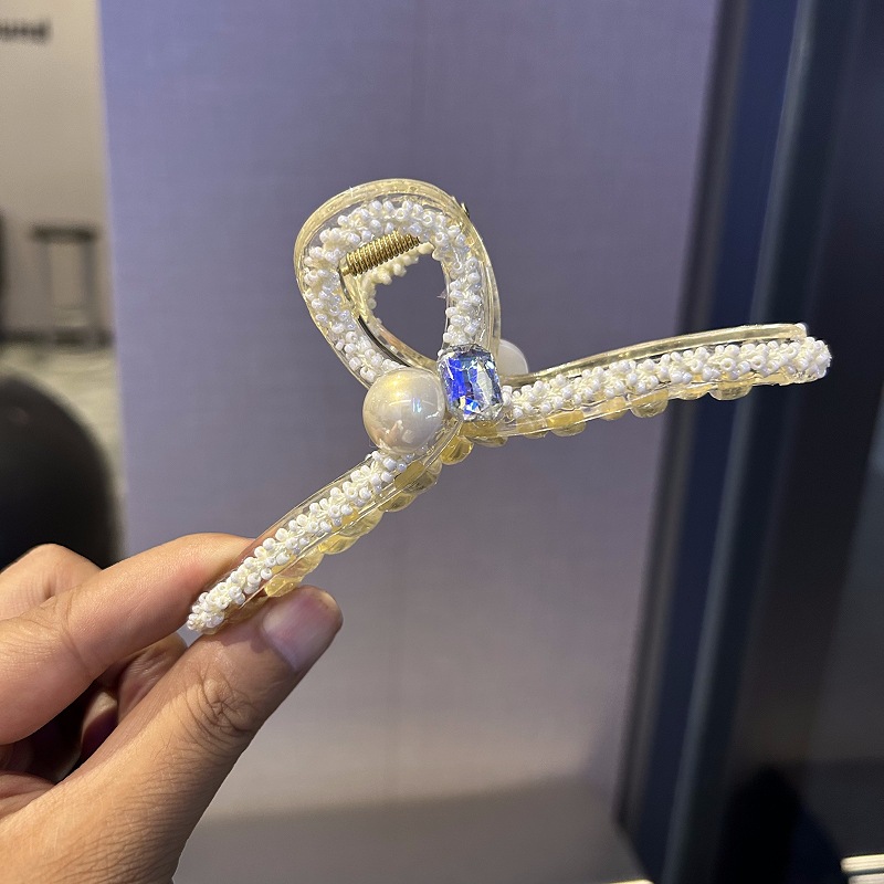 美拉德珍珠发夹女式复古鲨鱼夹气质水钻发卡后脑勺盘发抓夹头饰