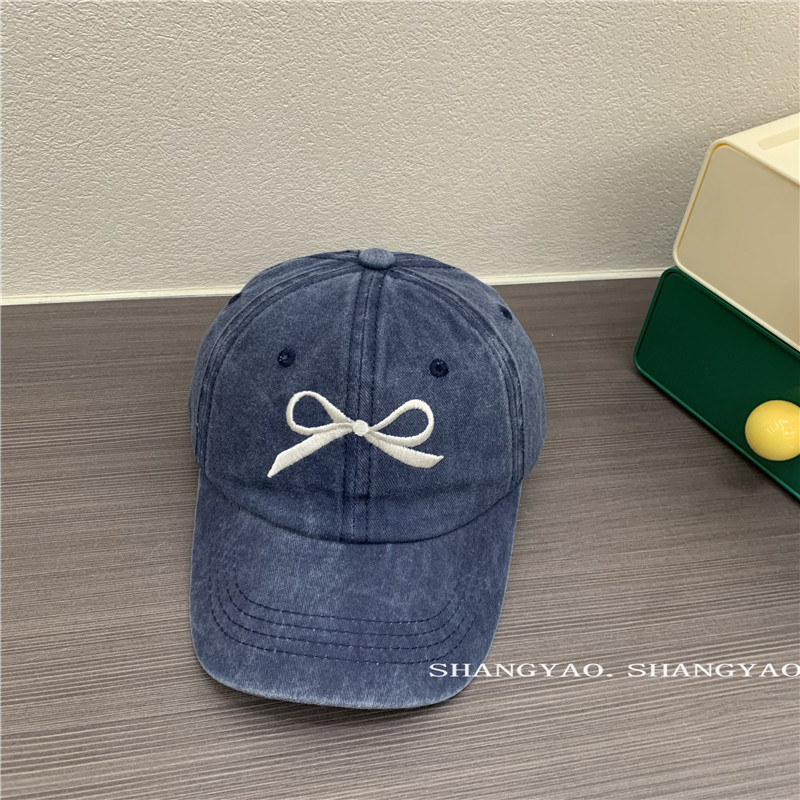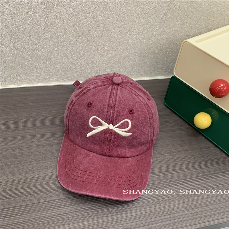 儿童帽子复古水洗做旧蝴蝶刺绣棒球帽春秋季休闲百搭个性鸭舌帽潮