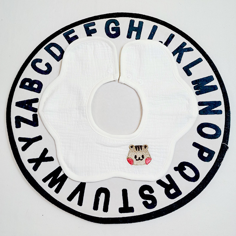 ins春夏新生婴儿纱布口水巾宝宝卡通刺绣棉质围嘴0-2岁吸水吐奶巾
