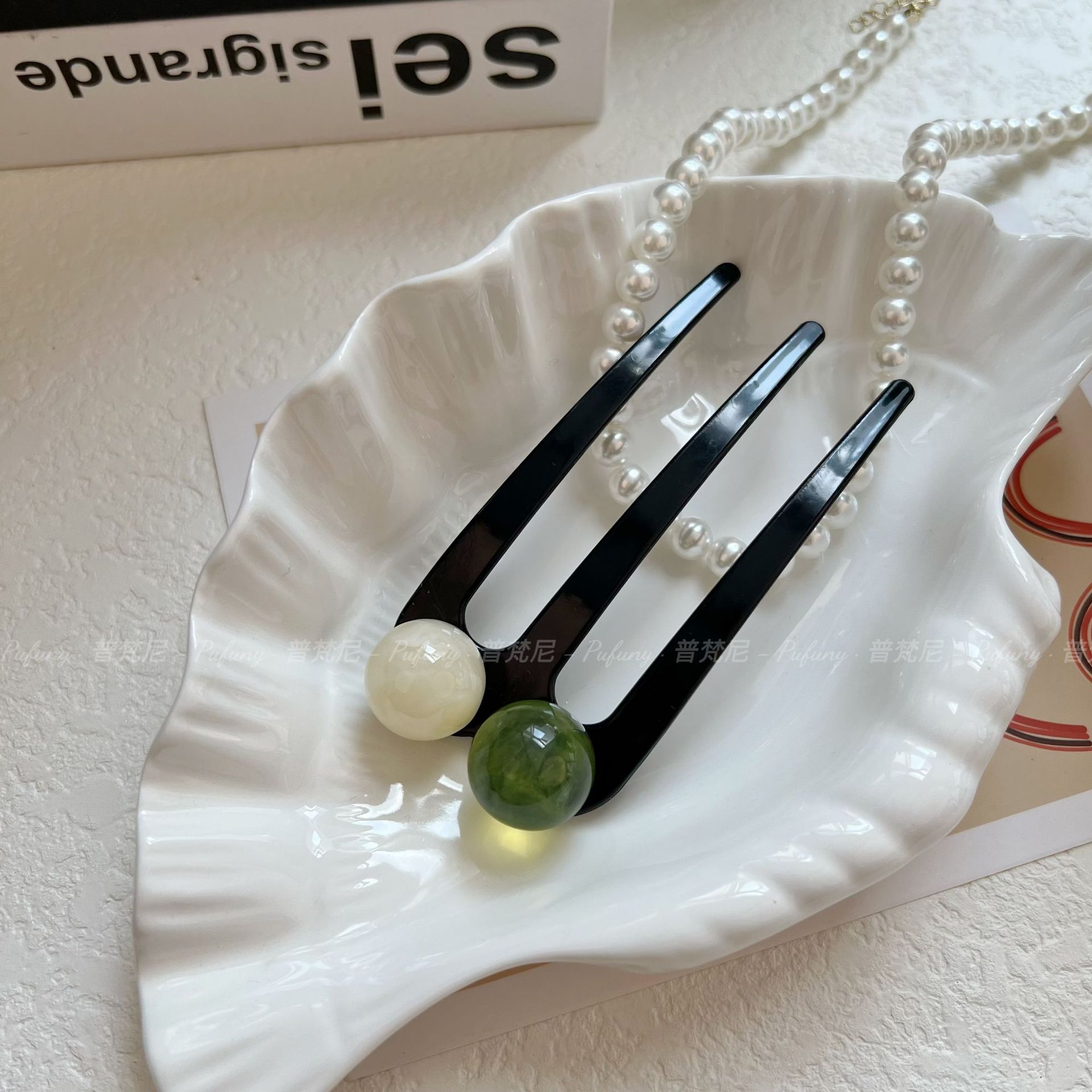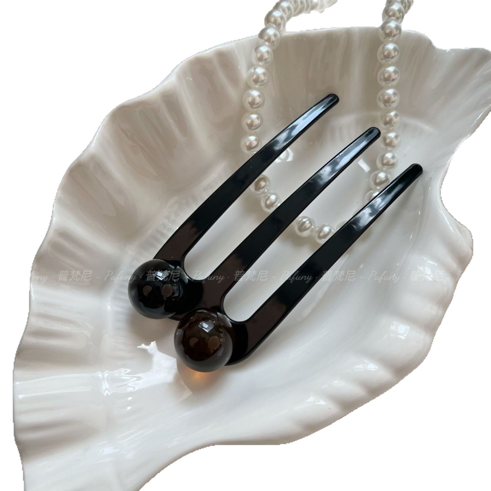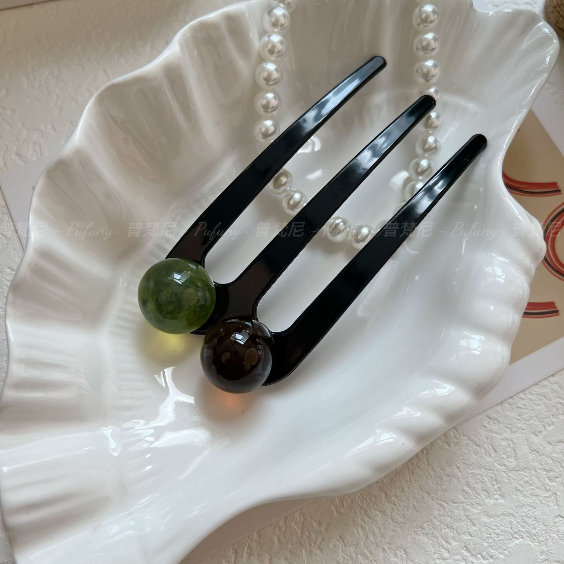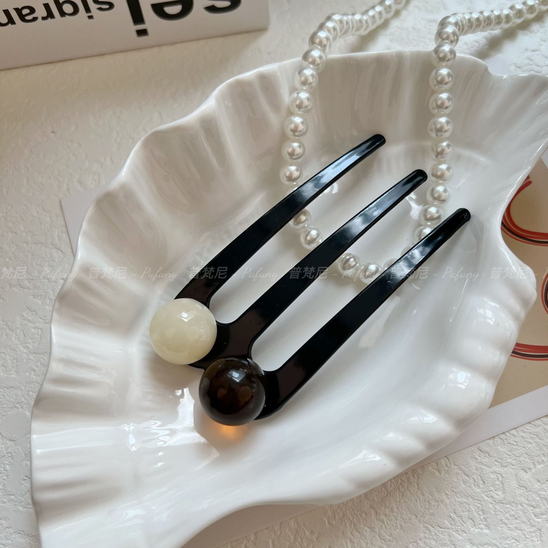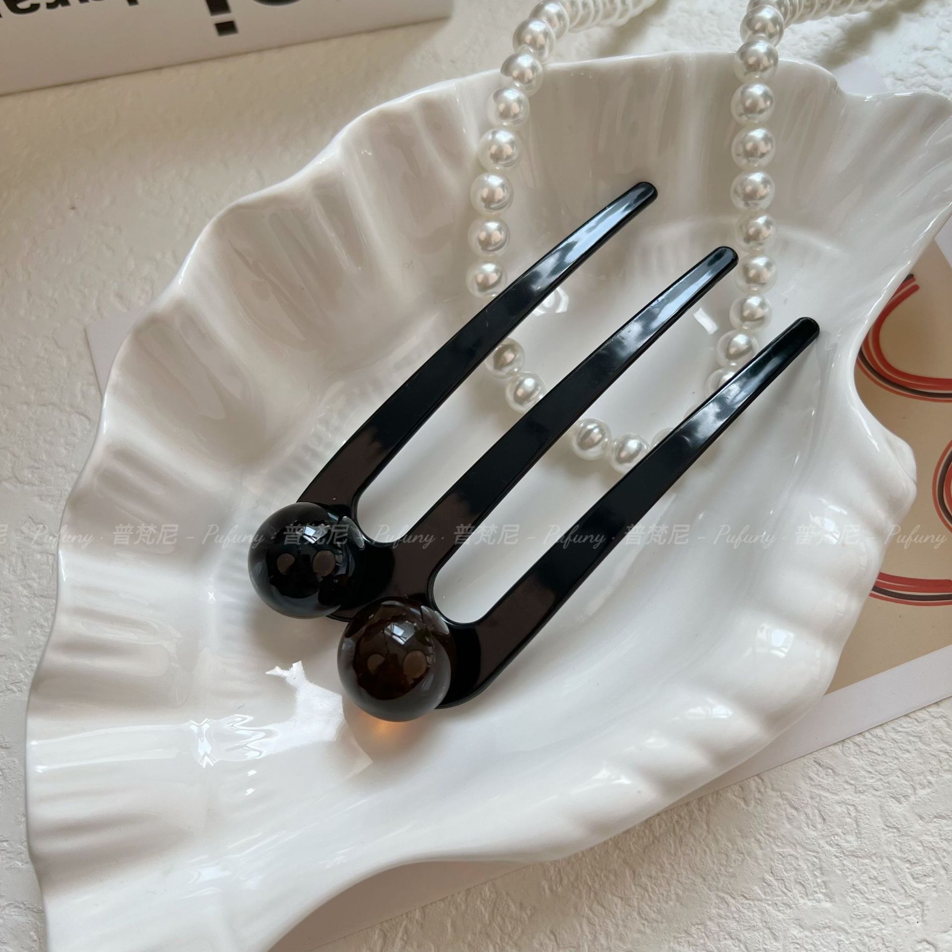 夏季新款贵气简约三齿珠珠发簪