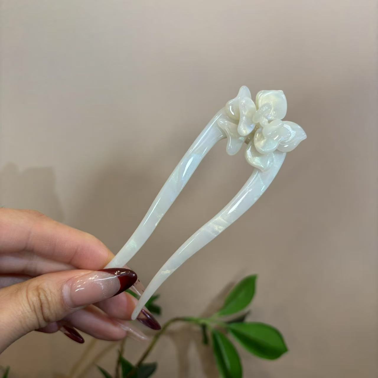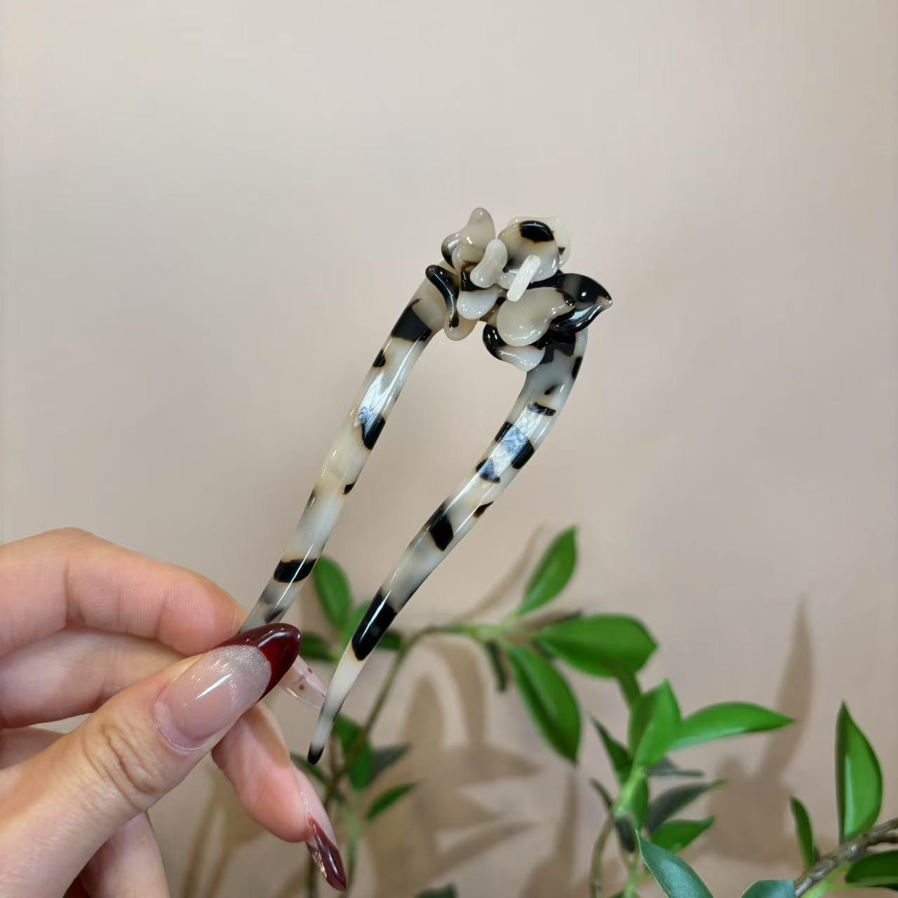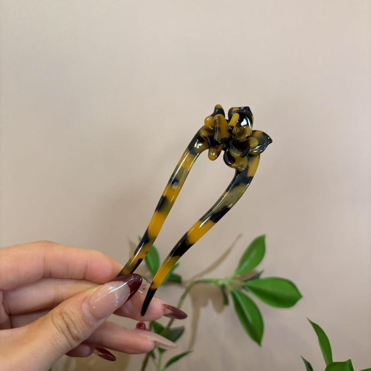 时尚小众!复古醋酸发簪!花朵发钗U形女醋酸发簪丸子头盘发头饰