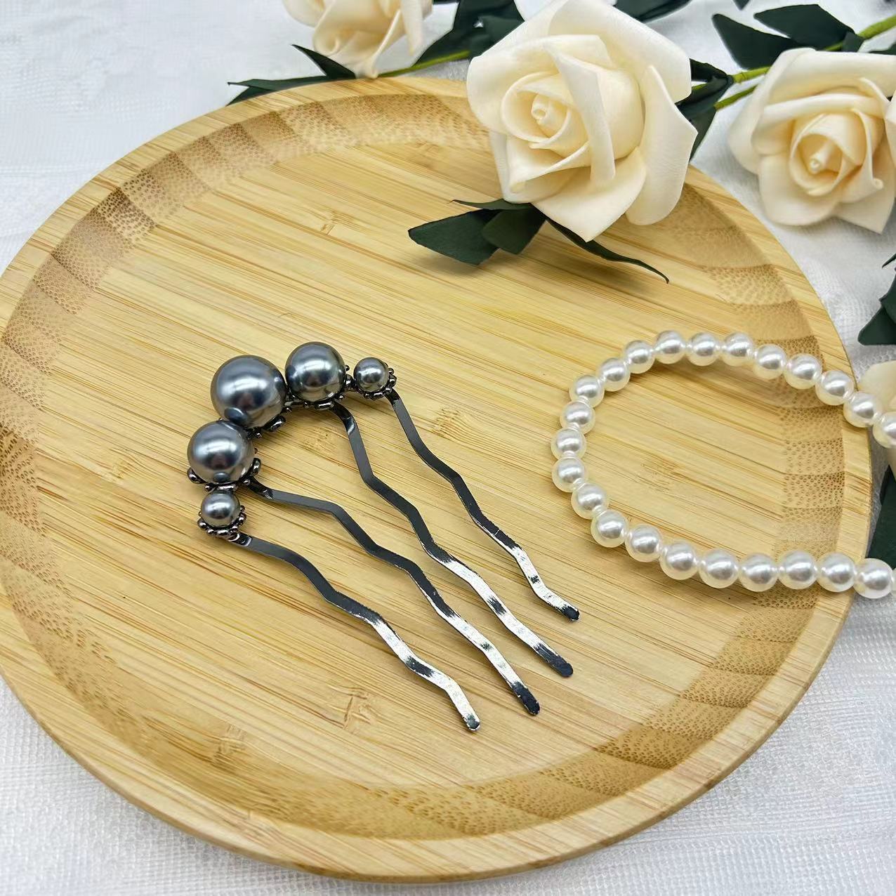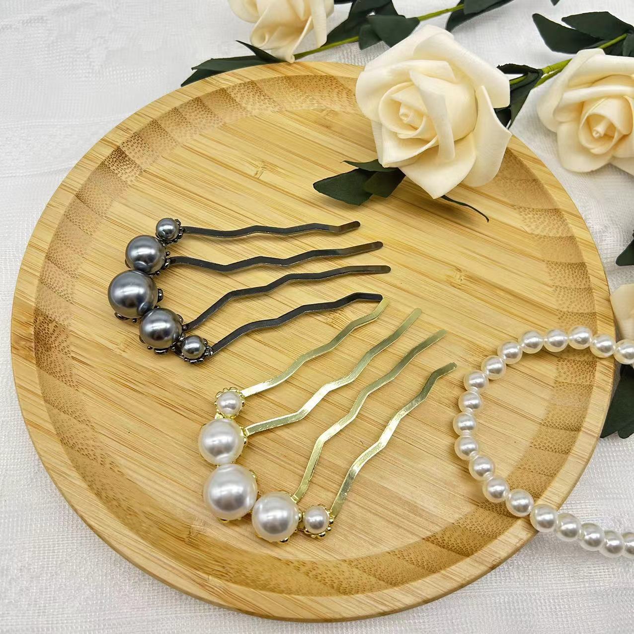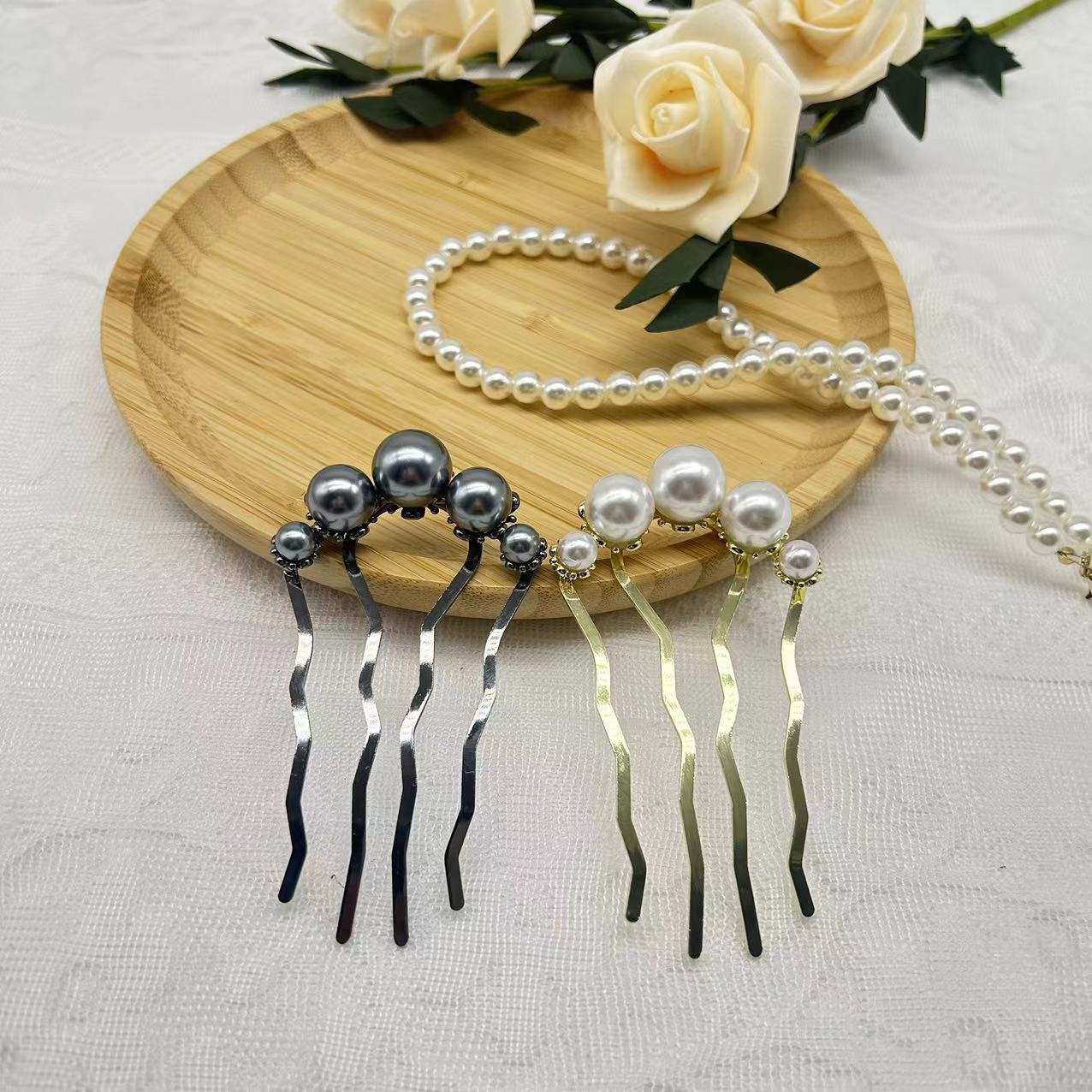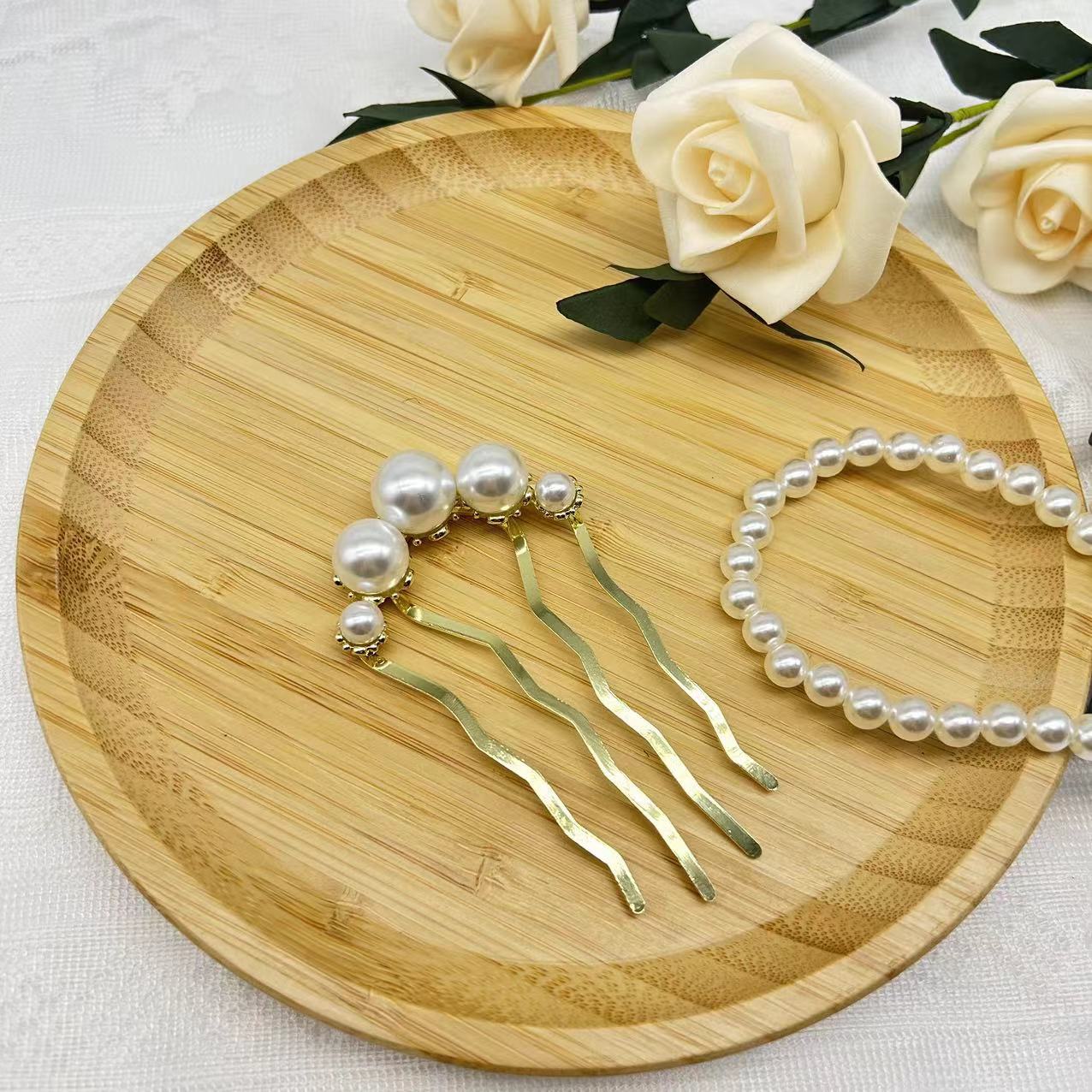 气质珍珠发簪四齿盘发簪子国风插梳简约发饰古风头饰百搭珠珠发簪