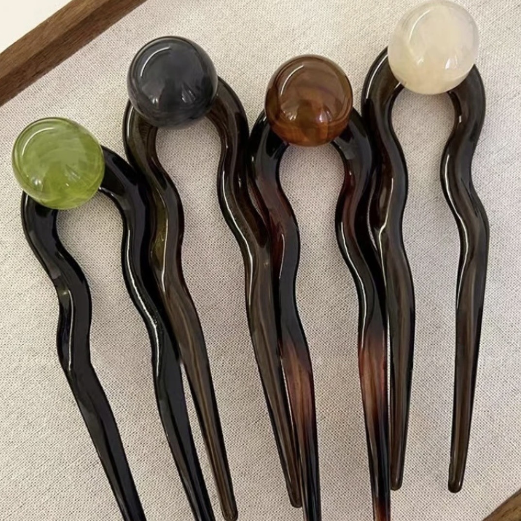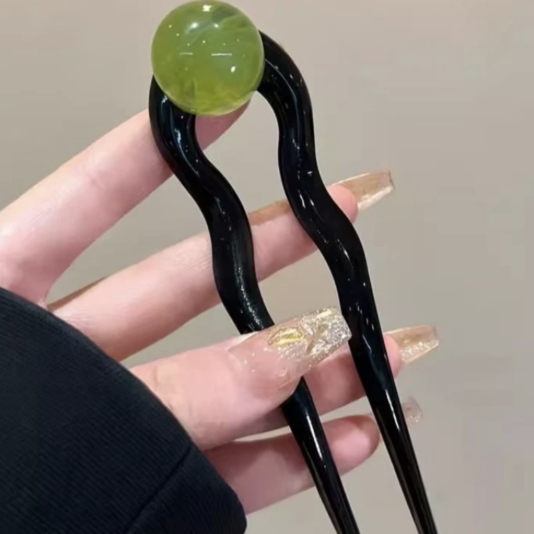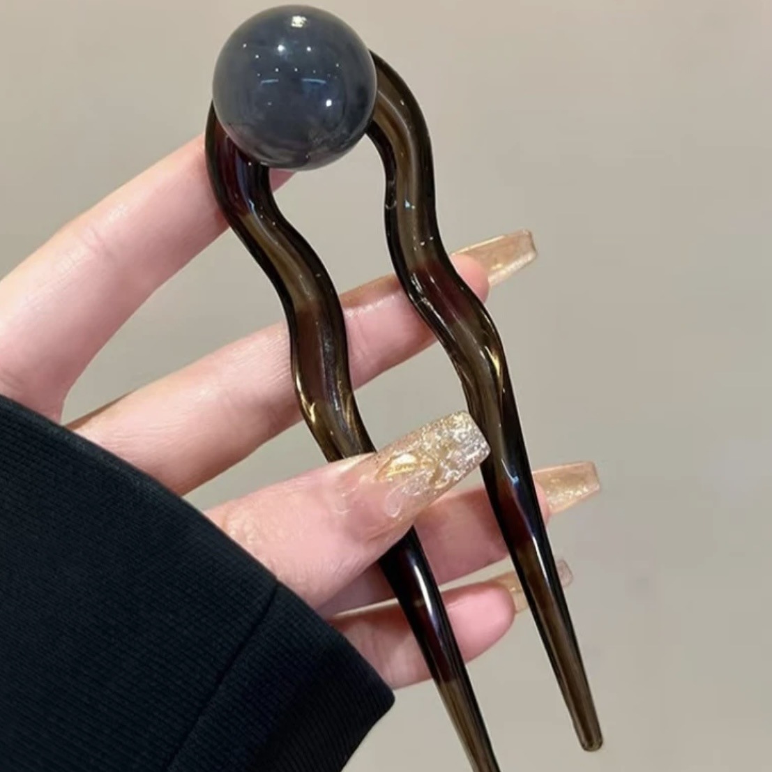 新款高端椰椰冻圆珠~复古简约珠珠u型发簪