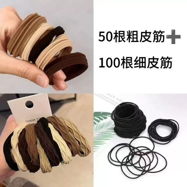 50根螺纹褶皱粗皮筋+100根黑色细皮筋袋装