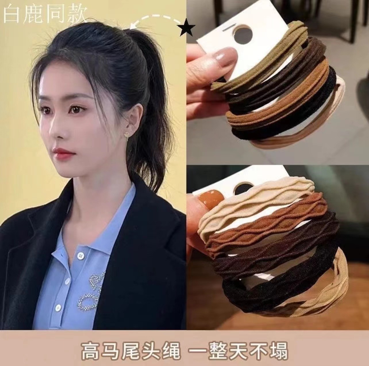 50根混色褶皱粗皮筋+100根黑色袋装细皮筋