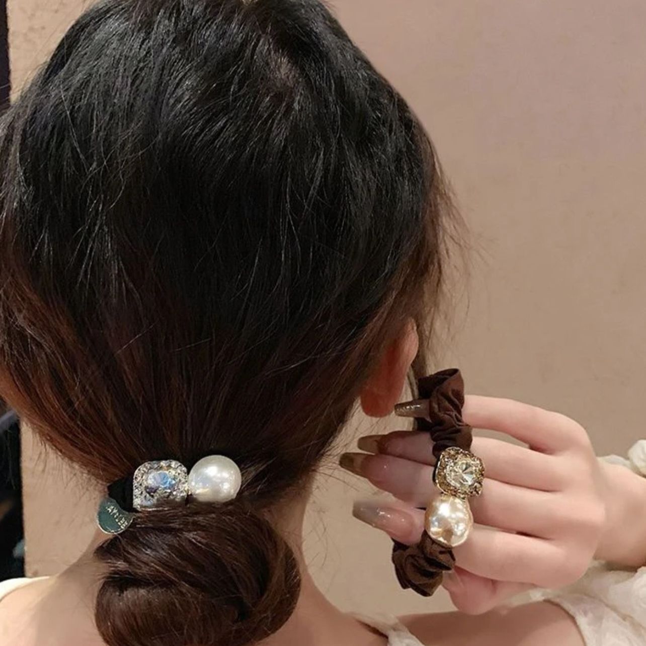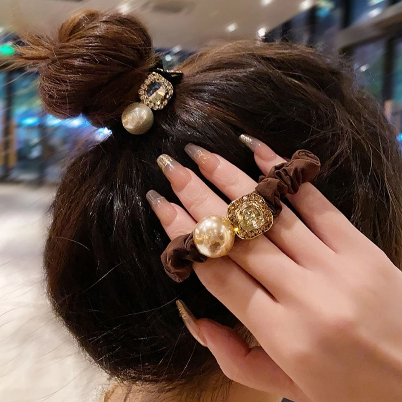 轻奢圆珠闪钻小肠发圈扎马尾头绳精致丸子头发绳