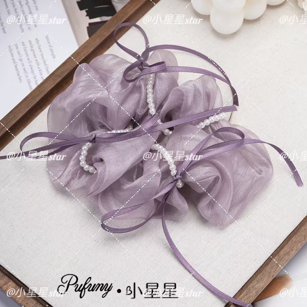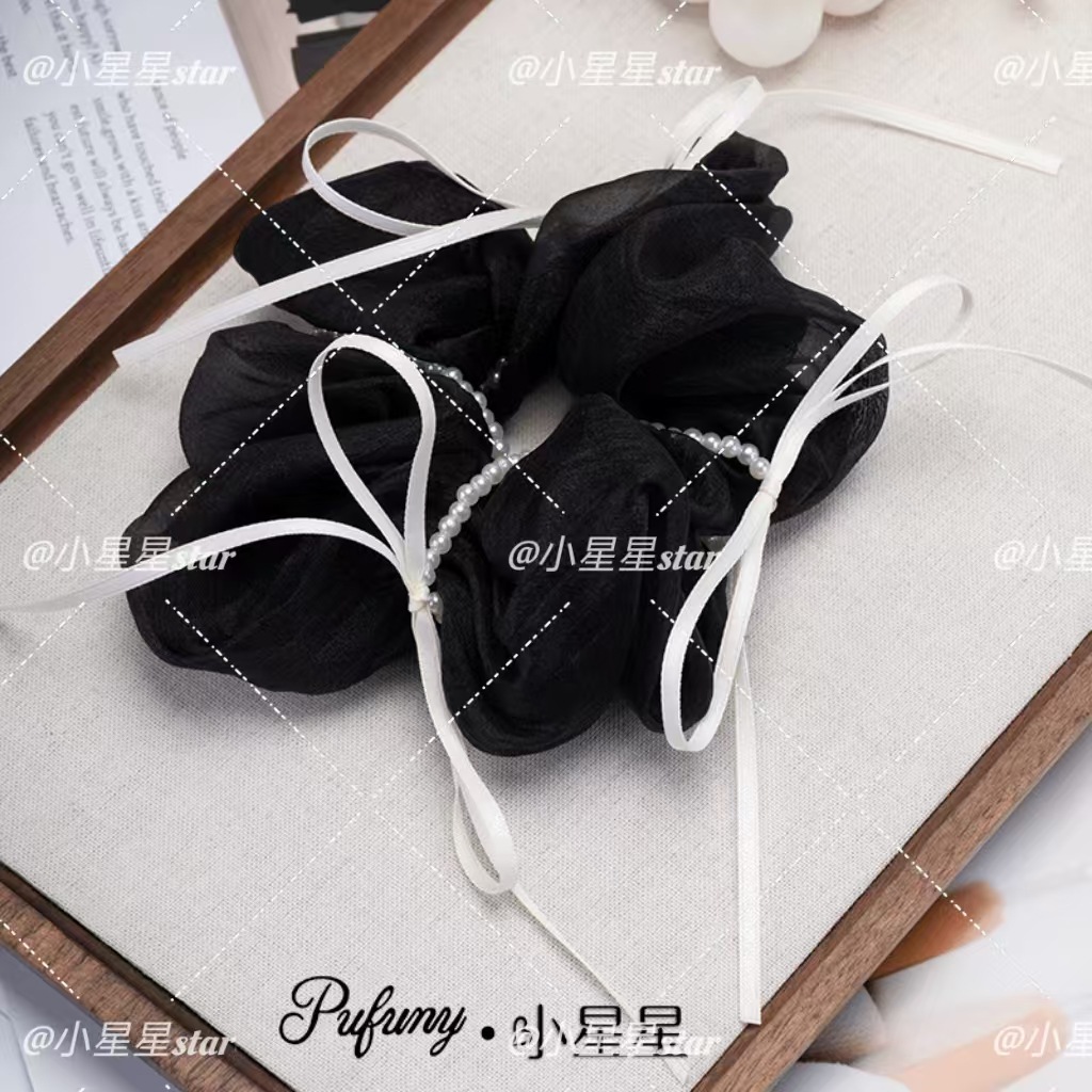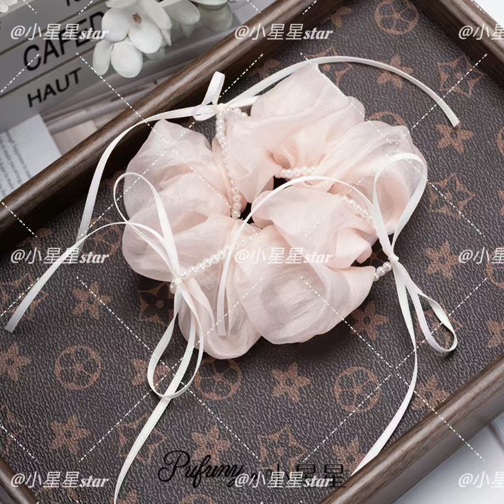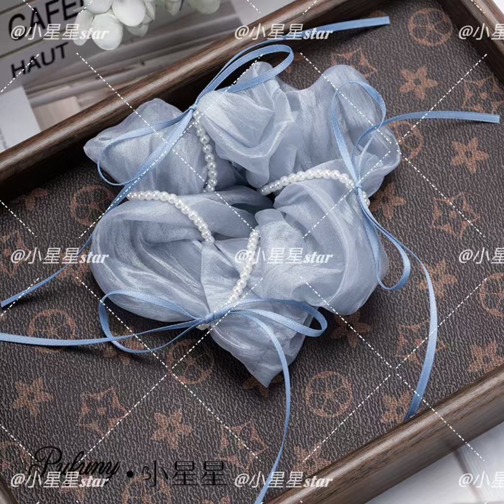 春季新款温柔芭蕾风蝴蝶结圆珠大肠发圈2025新款丸子头发饰头饰女