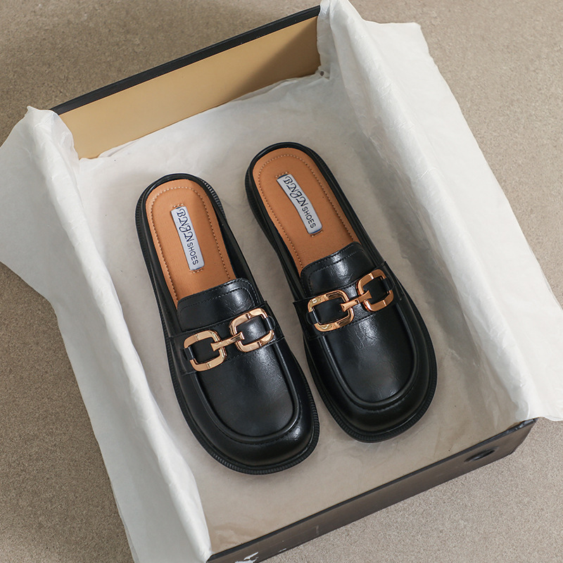 威威女郎 6818-20包头半拖女外穿新款春秋单鞋复古软底小皮鞋