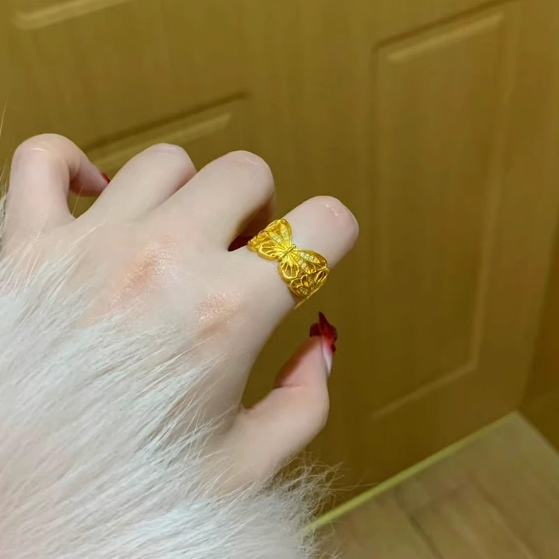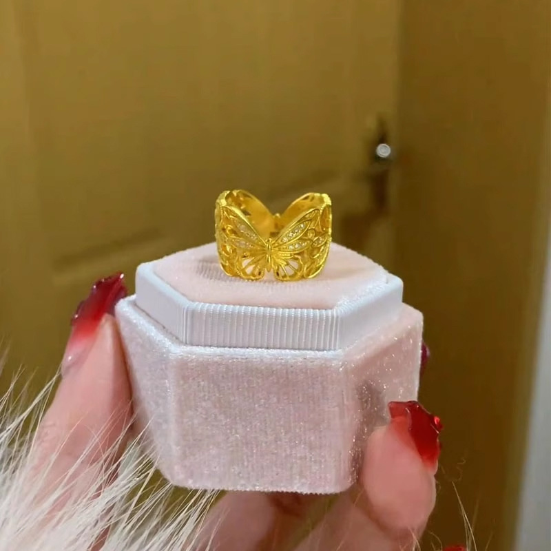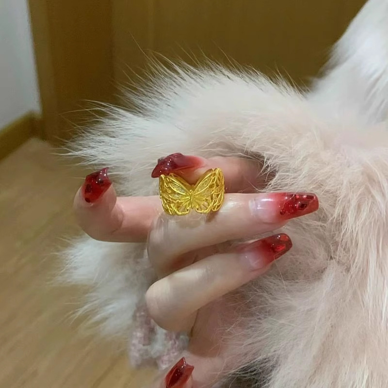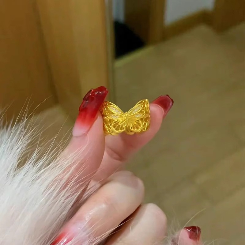 小红书爆款蝶梦星河蝴蝶戒指女2025新款古法金色点钻指环