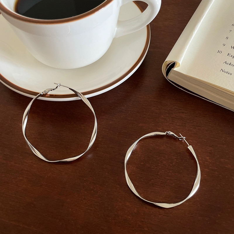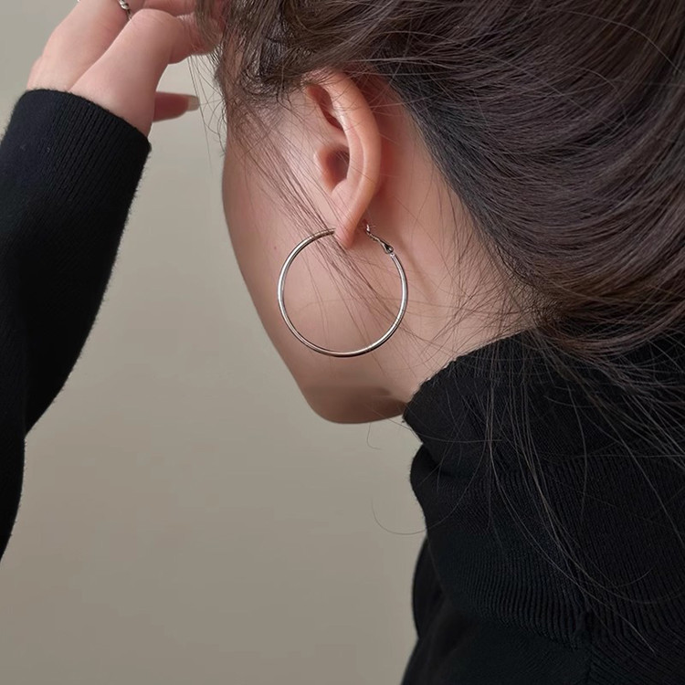 S925银针耳坠圈圈耳环女轻奢高级感秋冬耳钉欧美夸张大耳圈耳饰