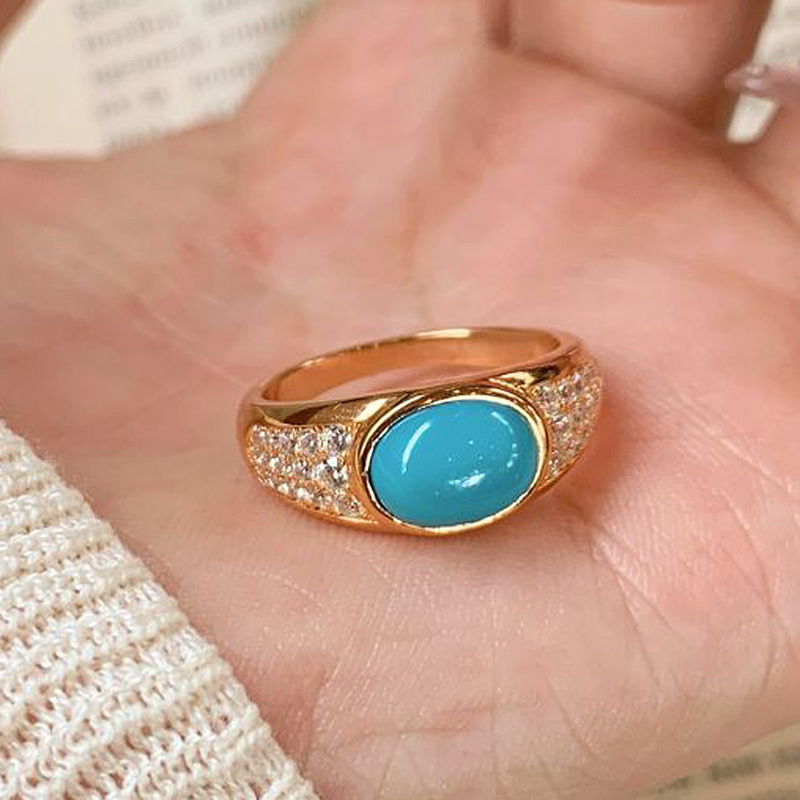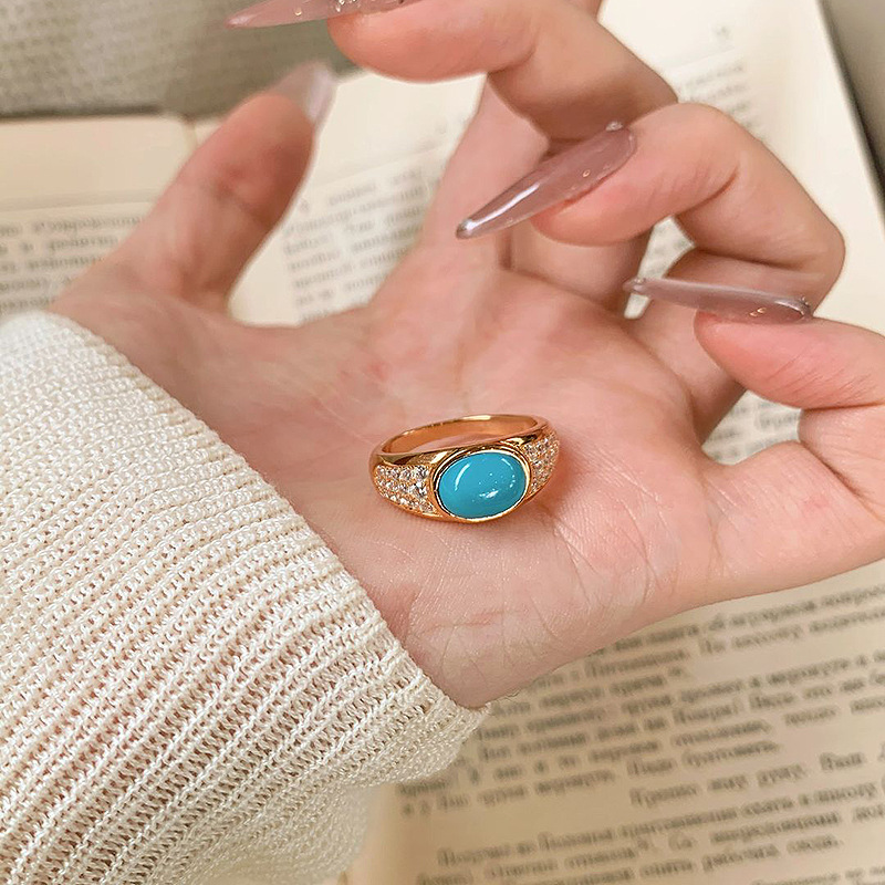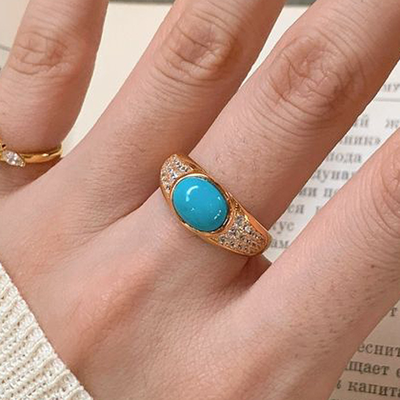 小红书爆款显白糖果蓝松戒指新款绿松开口可调节指环