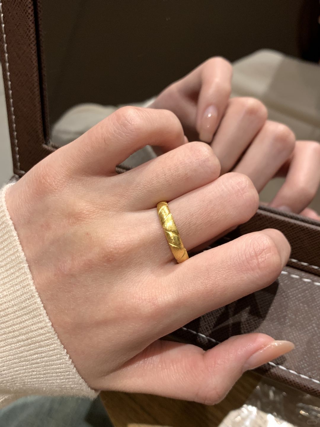 小红书爆款金芒溢彩拉丝素圈菱格戒指2025新款古法绸缎精致指环女