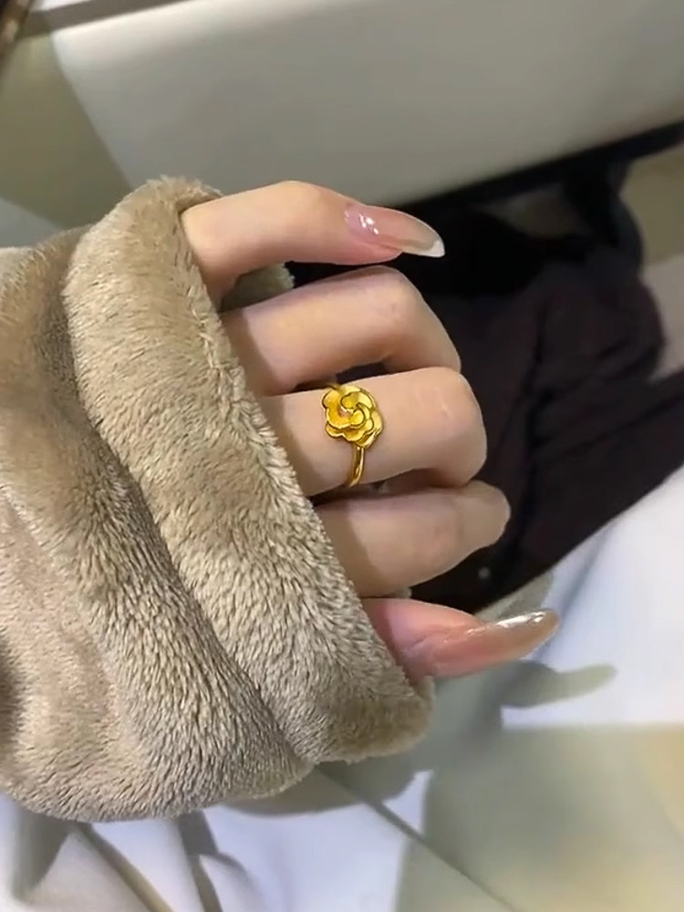 小红书爆款古法小金花戒指2025新款时尚轻奢精致玫瑰指环