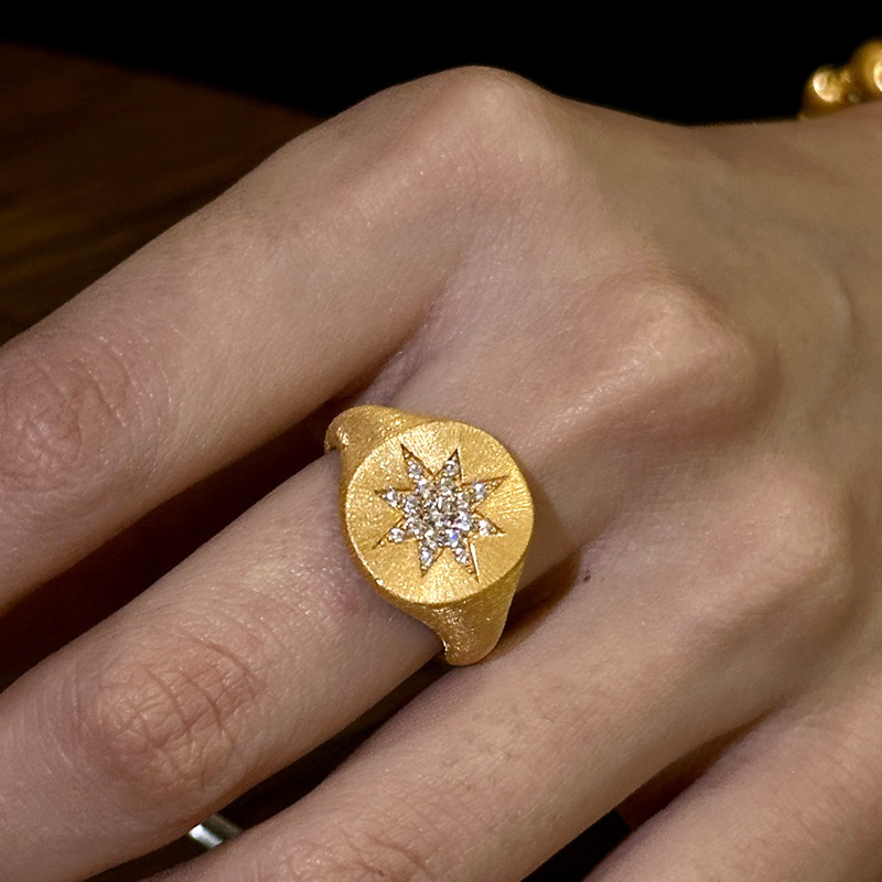小红书爆款拉丝八芒星戒指vintage中古风爆闪六芒星指环