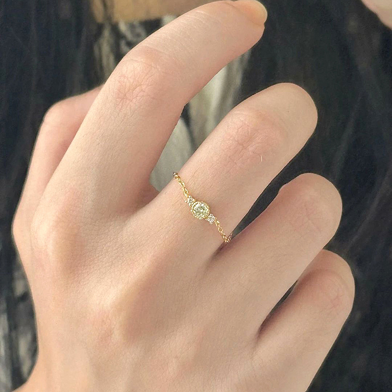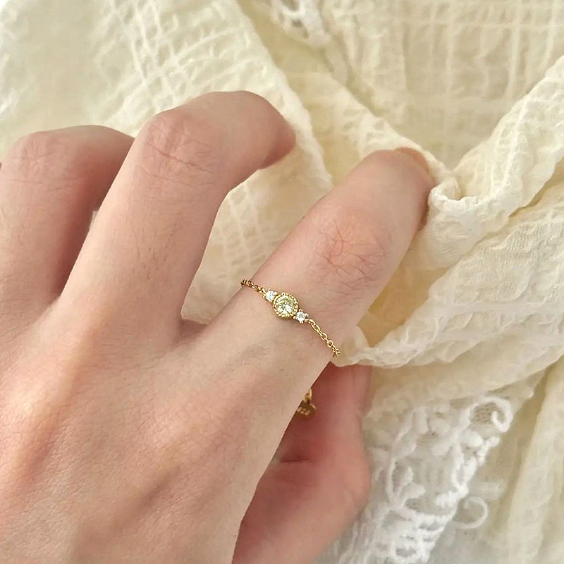 小红书爆款链条橄榄石戒女时尚肖总简约爆闪可调节指环