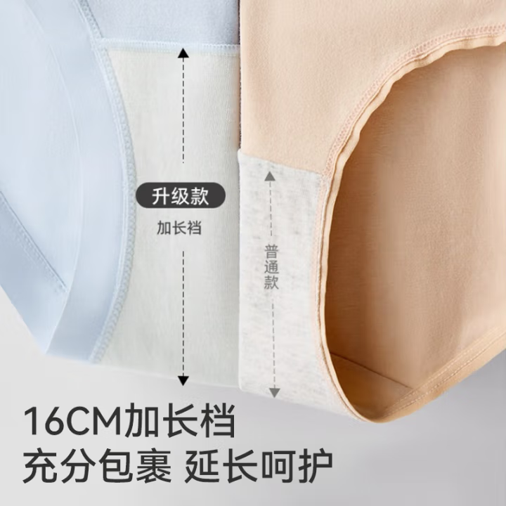 5条装内裤女式纯棉7A级抗菌100%棉加长裆透气中腰无痕女士内裤