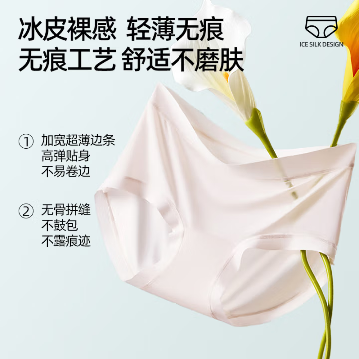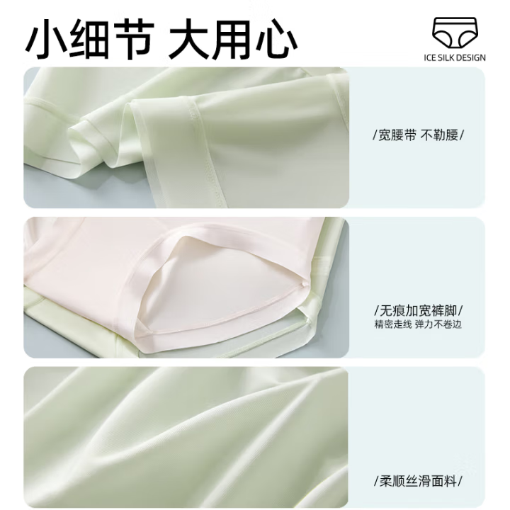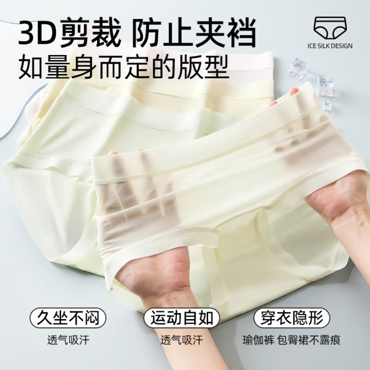 内裤女士内裤蚕丝底裆三角裤7条无痕无感简约凉感薄款高弹舒适
