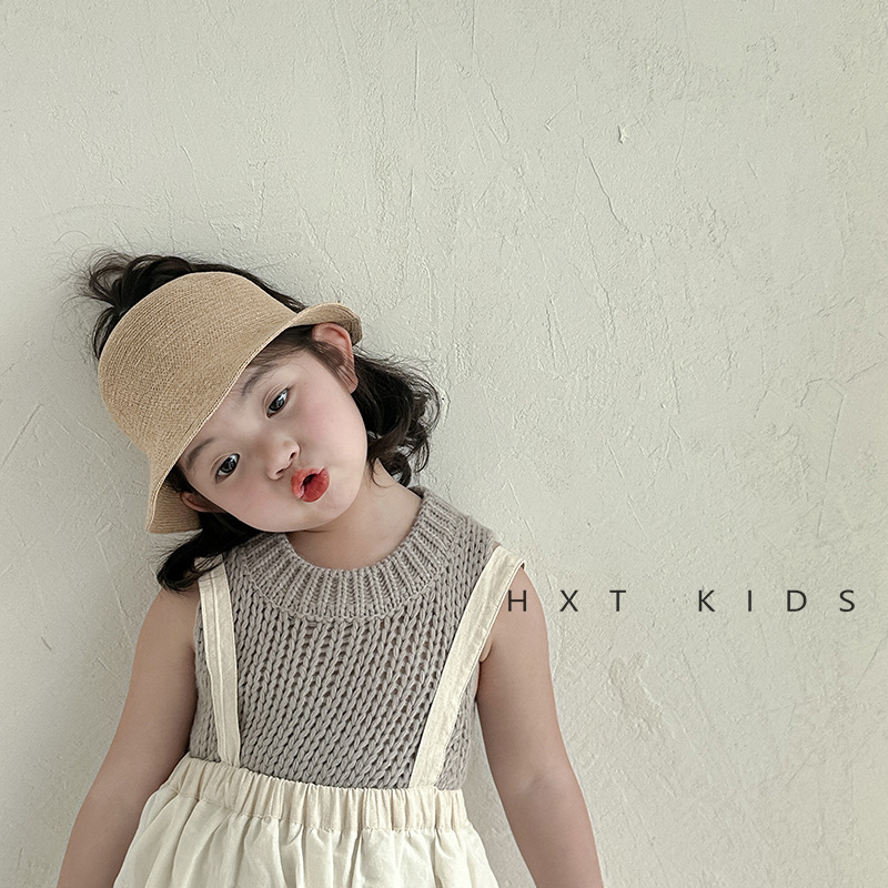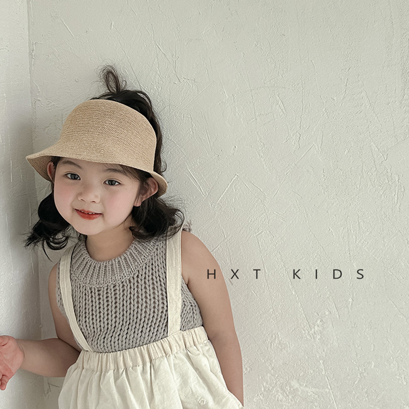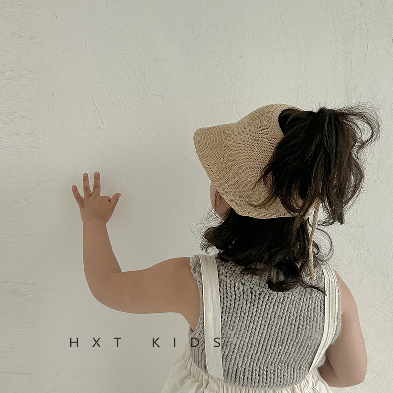ins韩国儿童空顶草帽夏季透气可扎高马尾女宝宝时尚透气防晒帽夏