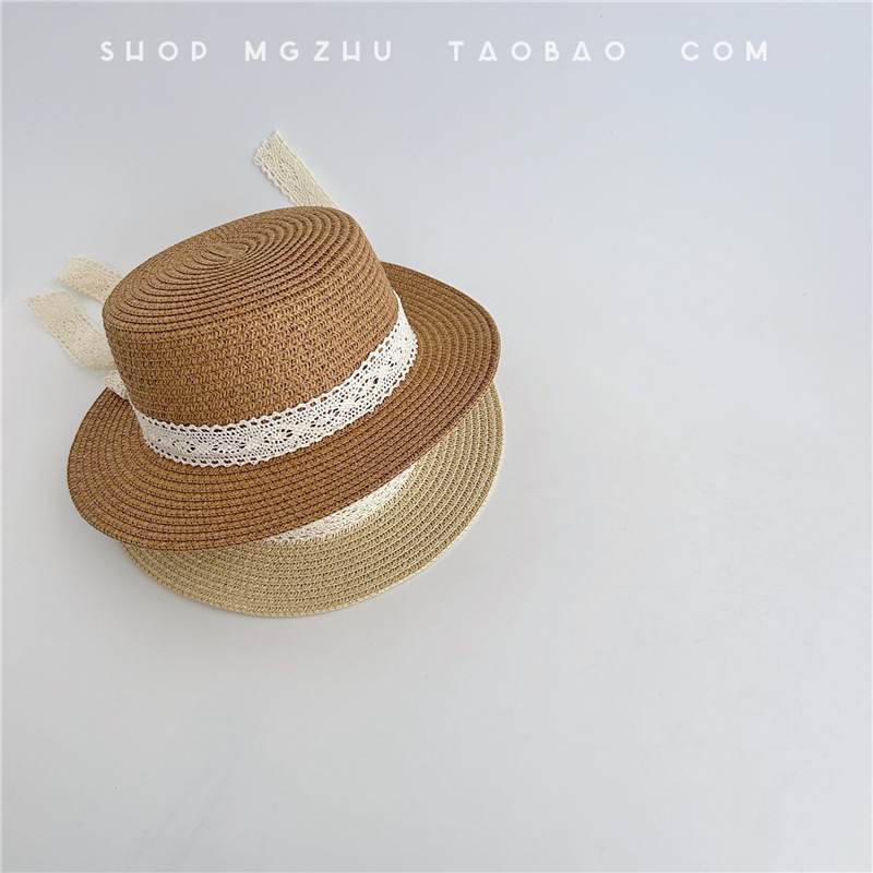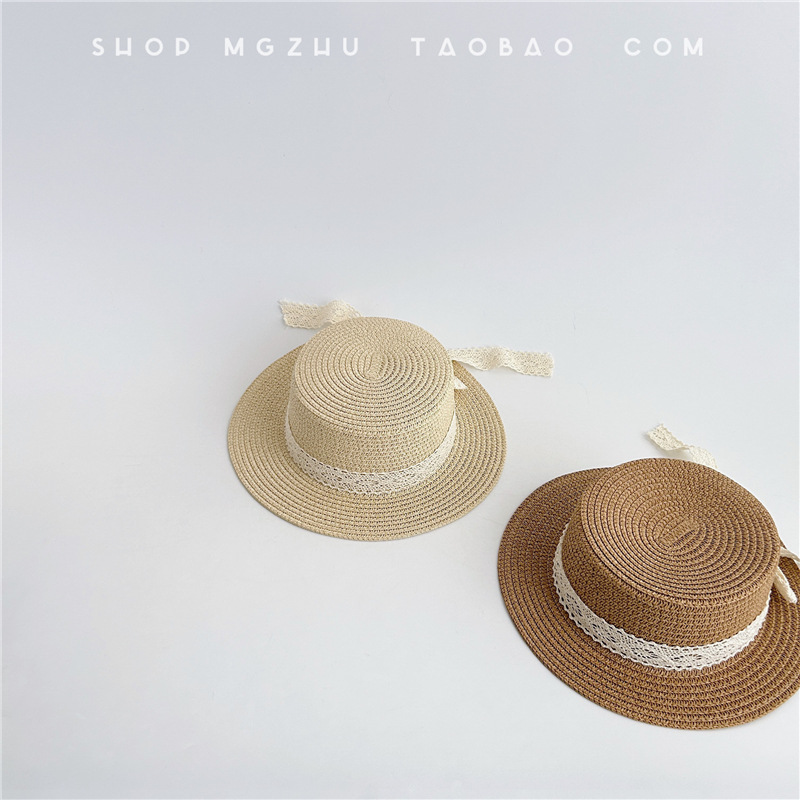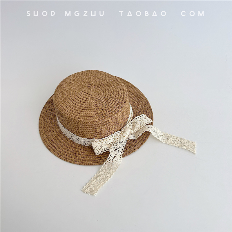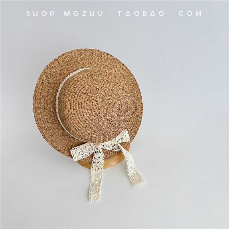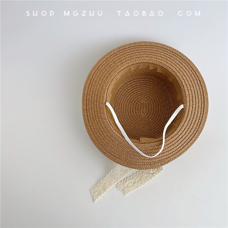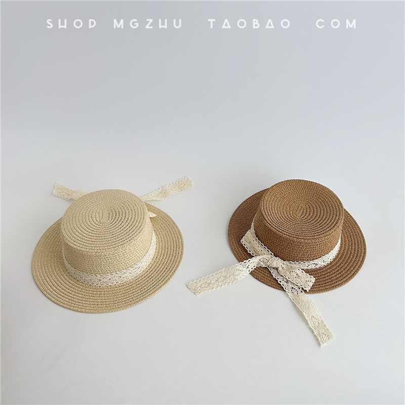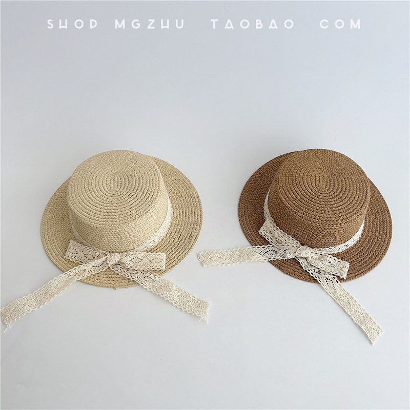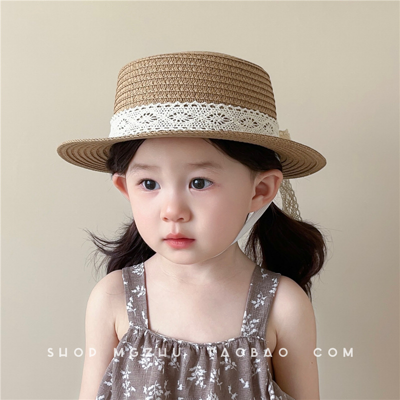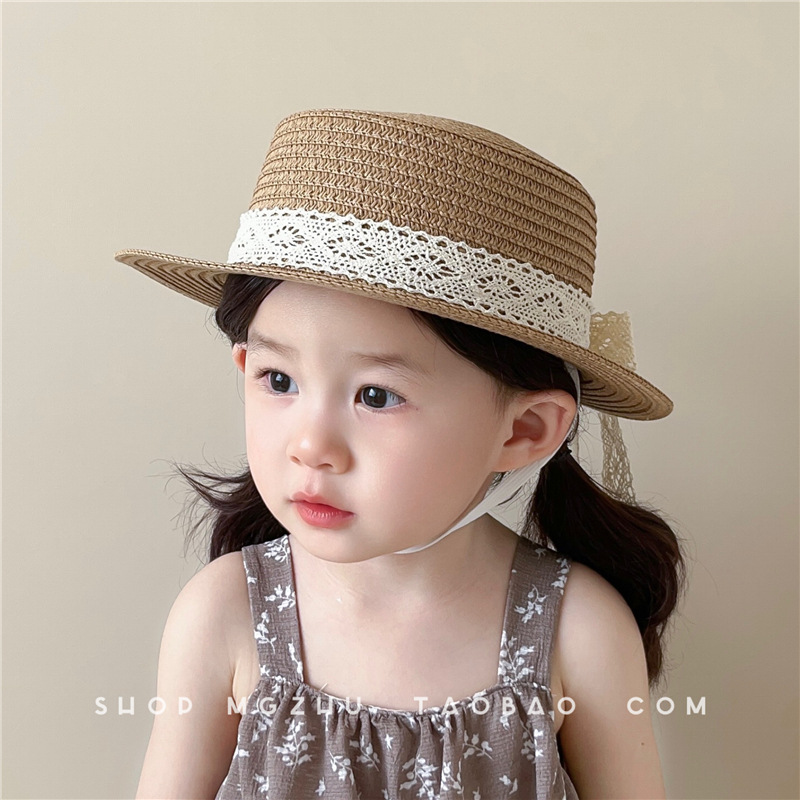 儿童帽子夏季女宝宝韩版蕾丝蝴蝶结宽檐遮阳沙滩防晒帽女童草帽潮