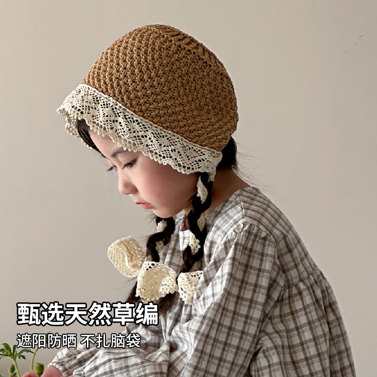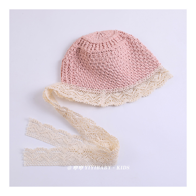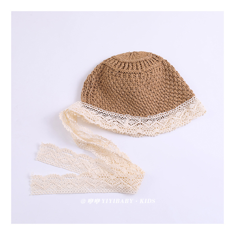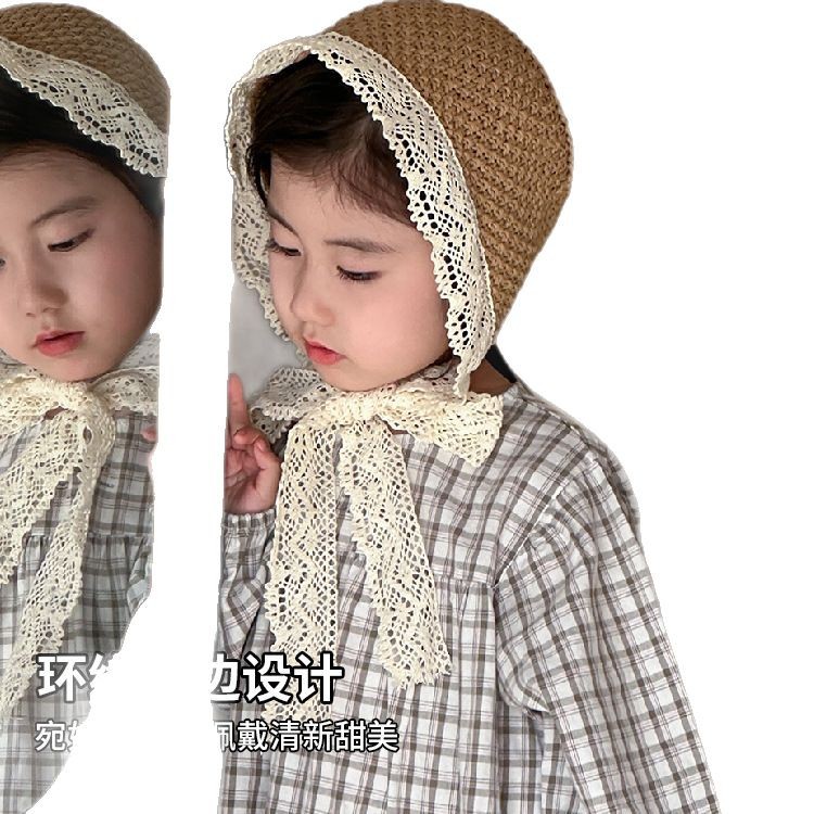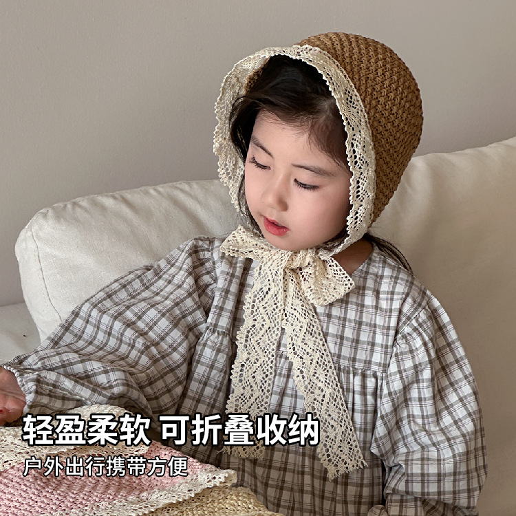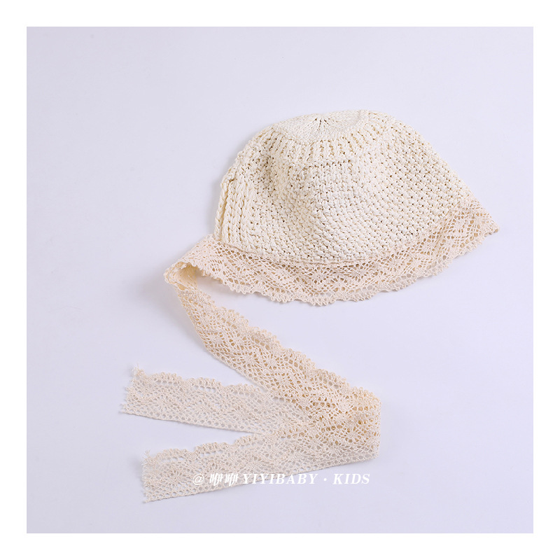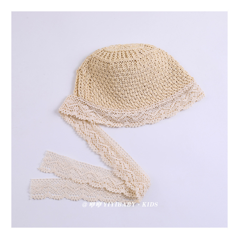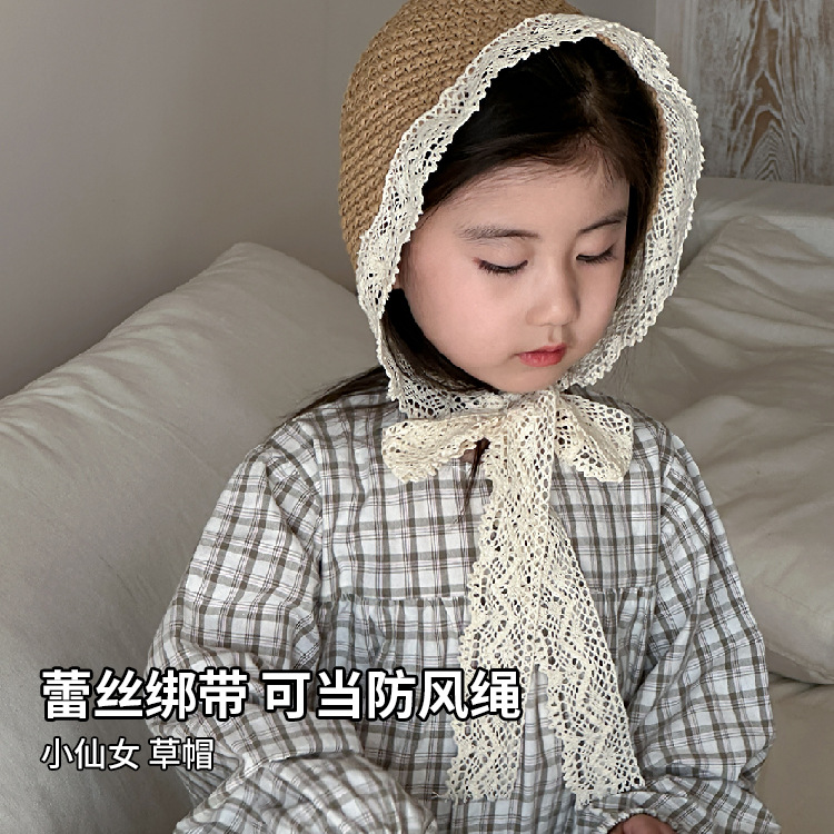 儿童帽子夏季大檐飘带蕾丝边女童防晒太阳帽宝宝出游海边遮阳草帽