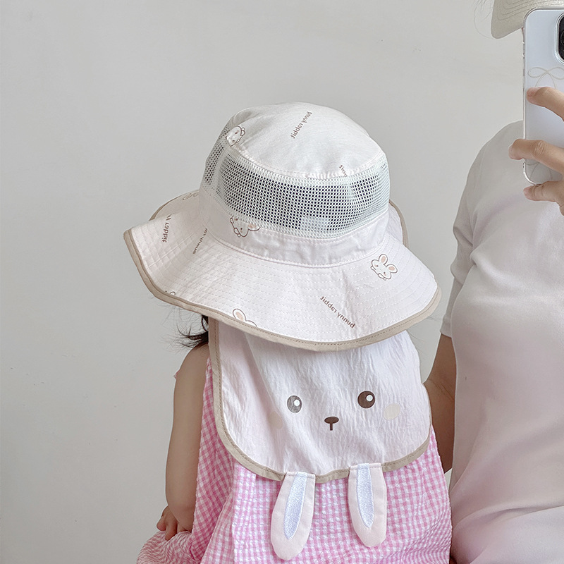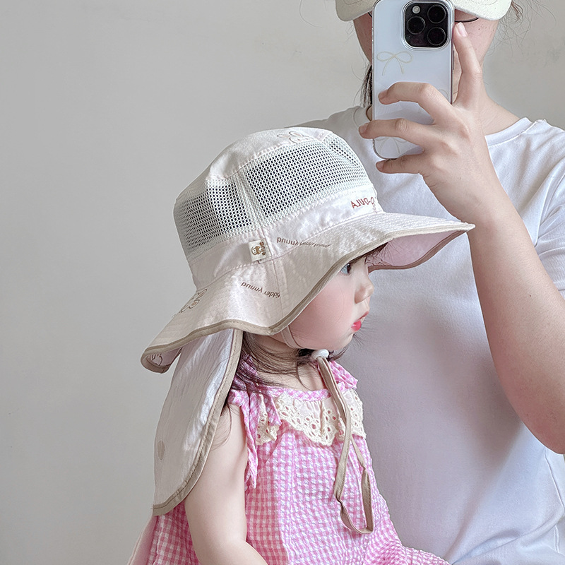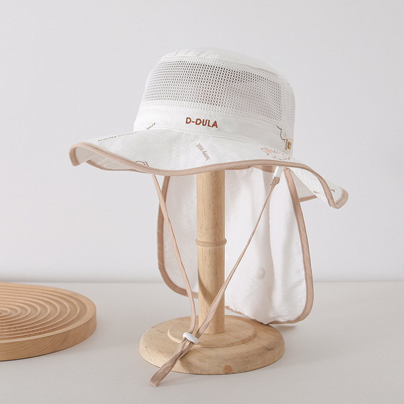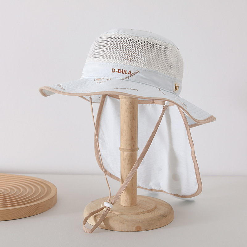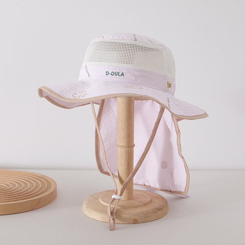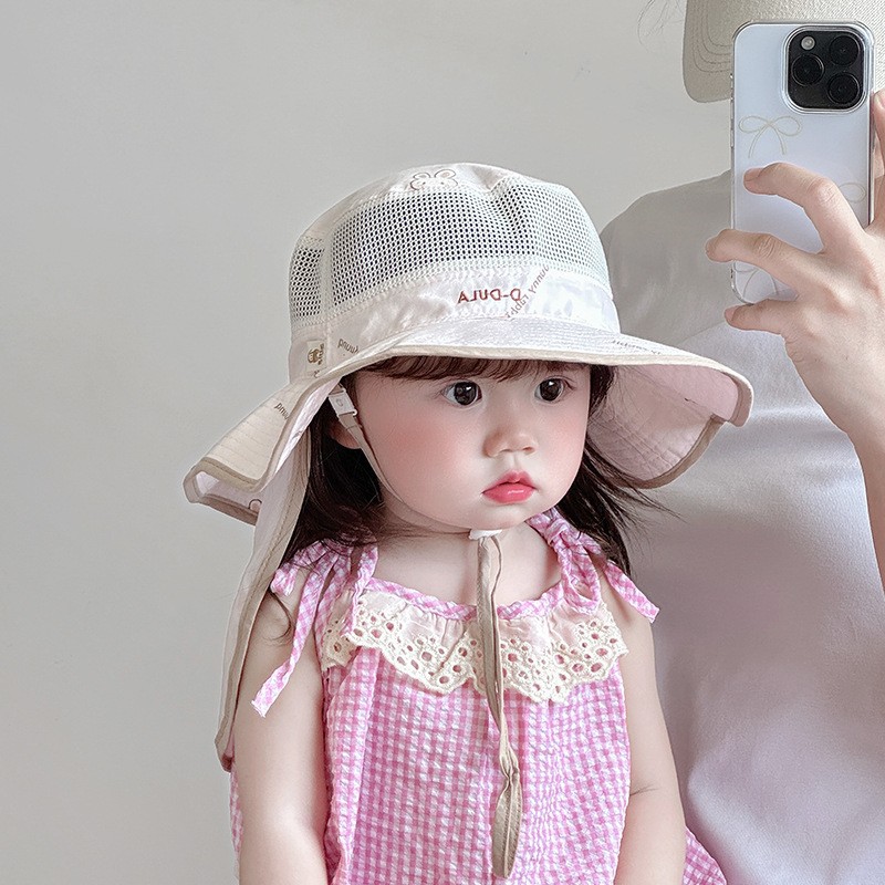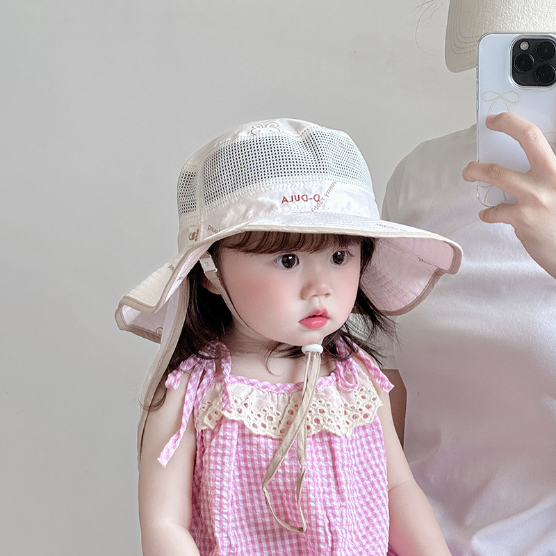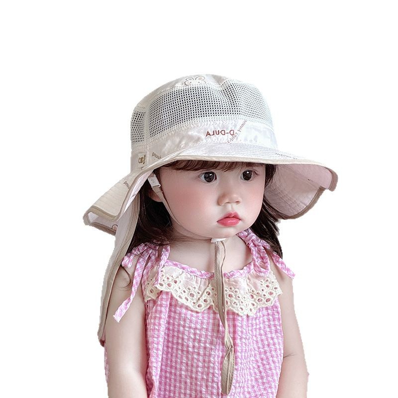 宝宝帽子春夏薄款透气遮阳帽带披肩护脖防晒帽儿童夏天防紫外线帽