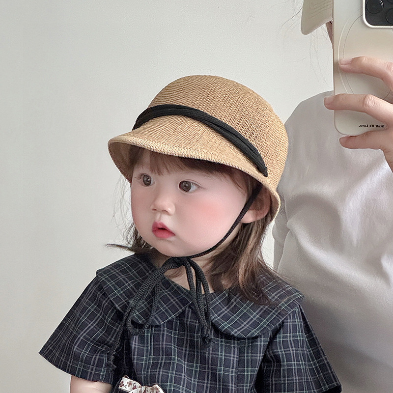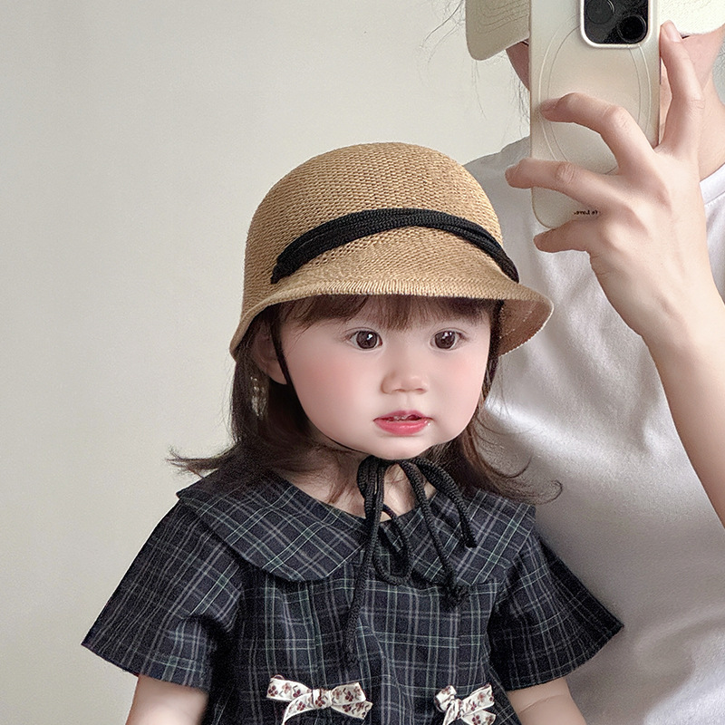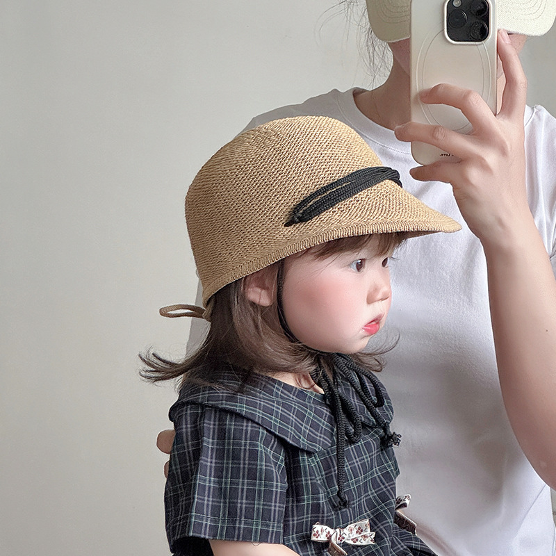 宝宝帽子春夏草帽韩版洋气草编马术帽男女童透气遮阳帽防晒太阳帽