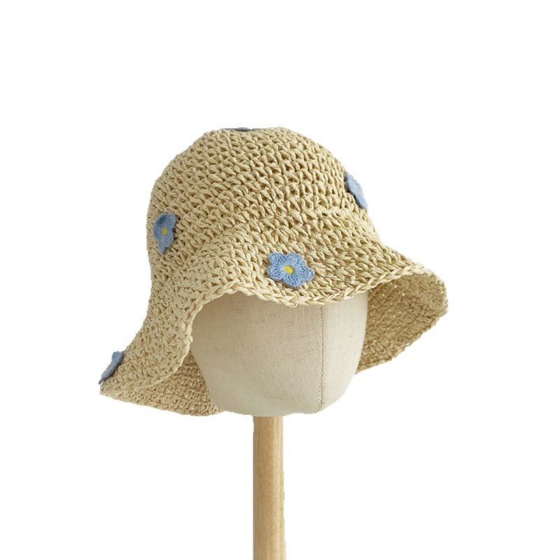 儿童帽子女孩夏季新款草帽女童洋气渔夫帽宝宝帽子夏款花朵防晒帽