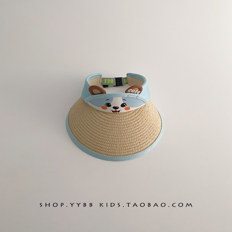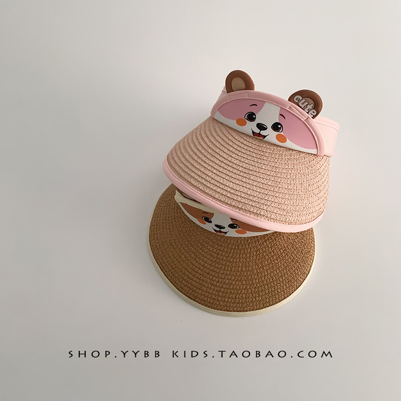 儿童帽子夏季薄款大帽檐防紫外线遮阳帽男女宝宝可爱草编空顶帽潮