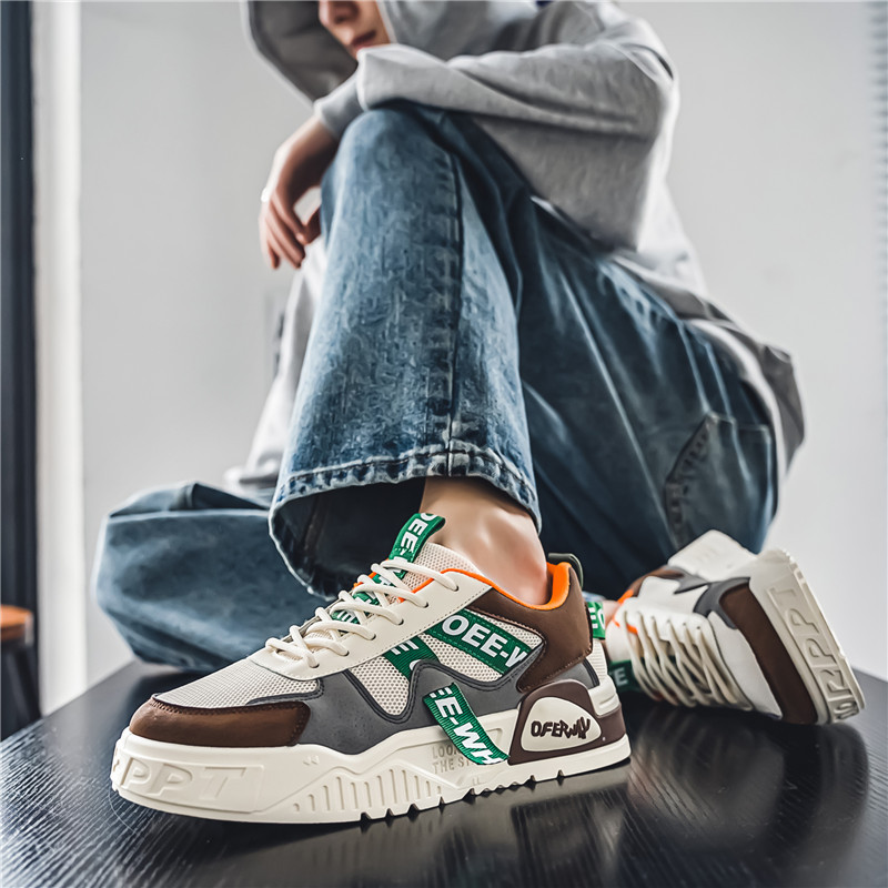 新款男鞋网面透气学生厚底增高休闲板鞋韩版小众男士百搭潮鞋