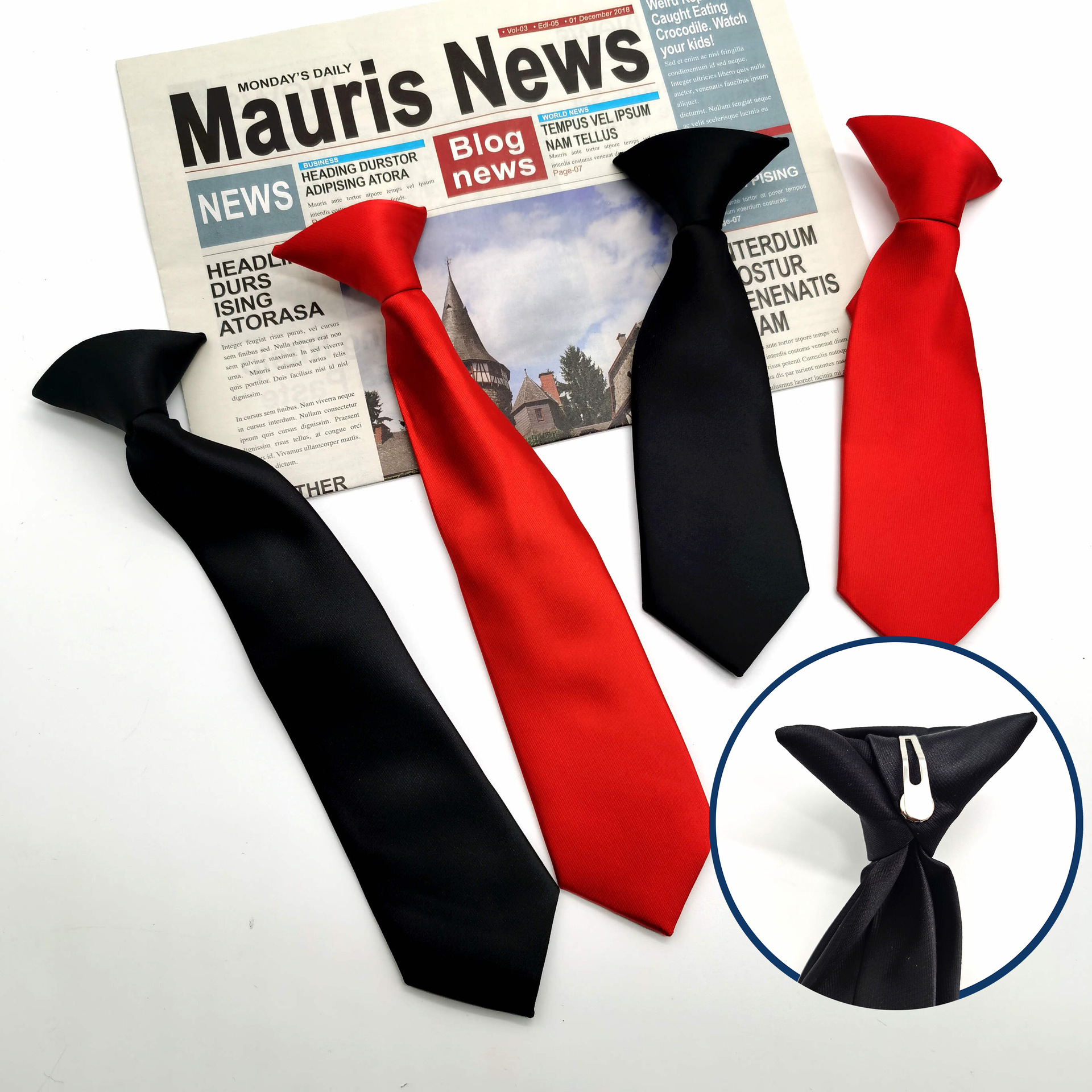 懒人男士正装商务领带黑红蓝素色西装配饰金属插扣领带