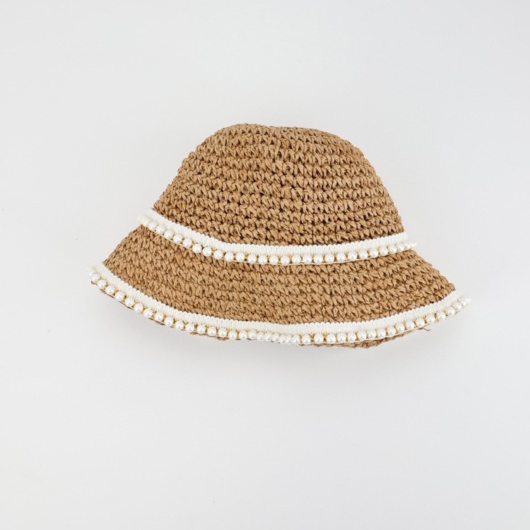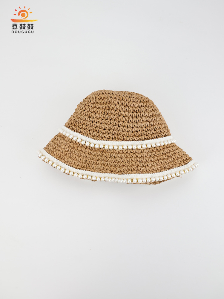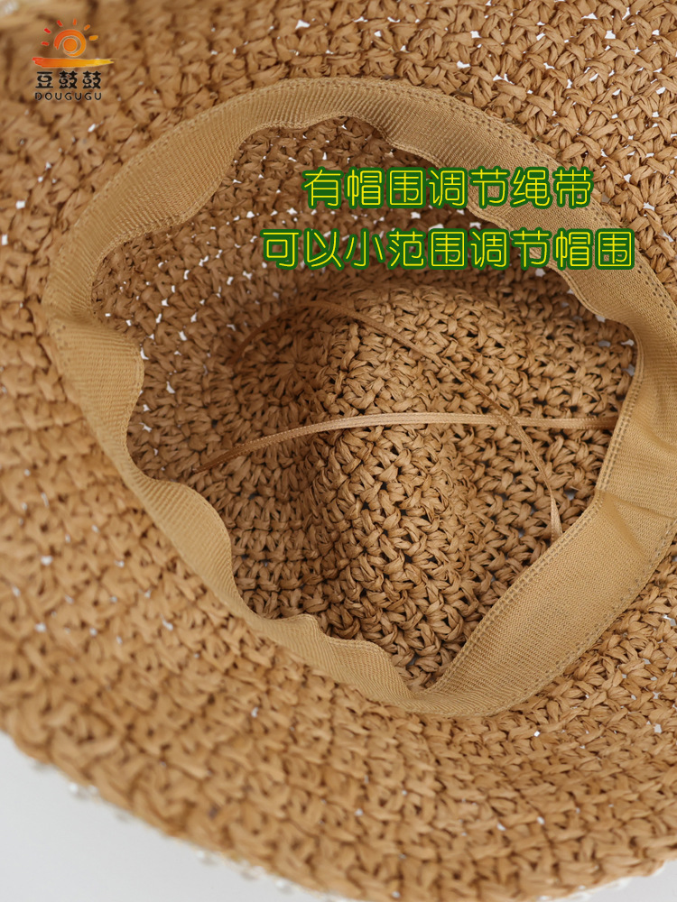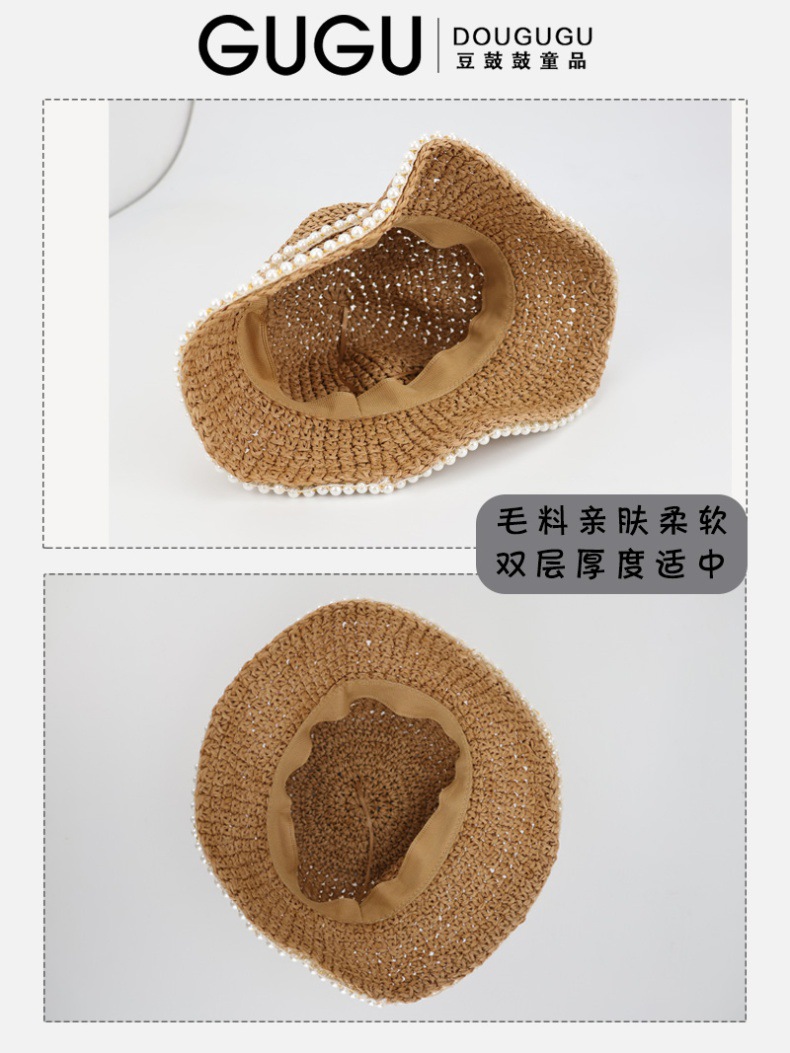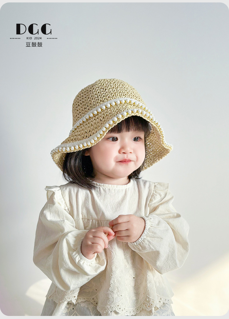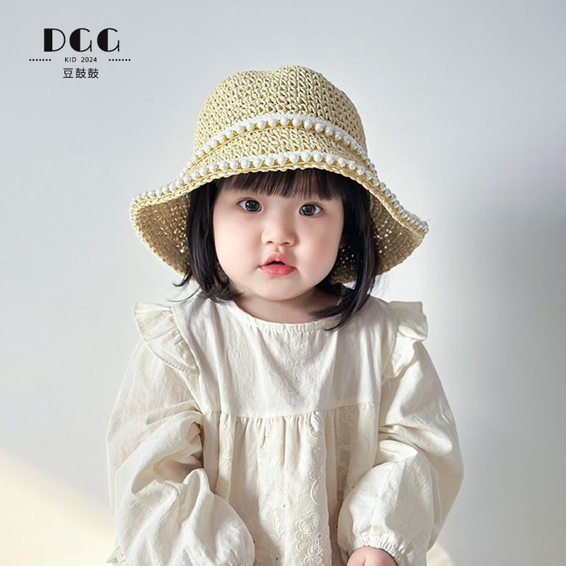 儿童草帽夏季遮阳防晒手工珍珠帽子女童韩版公主可折叠沙滩渔夫帽