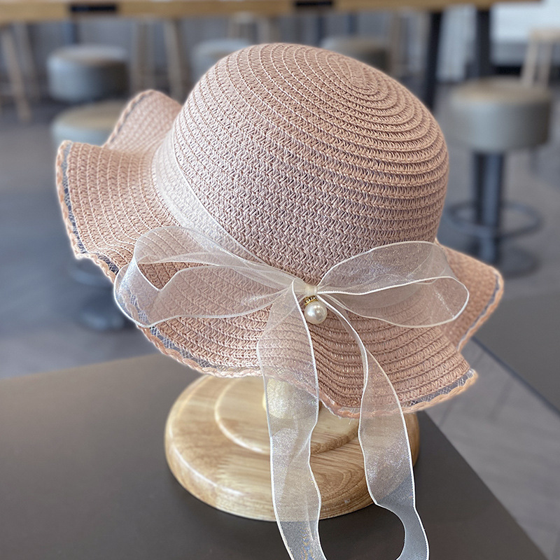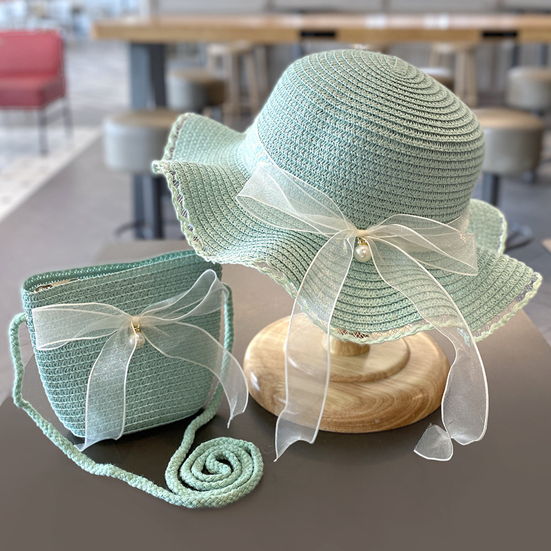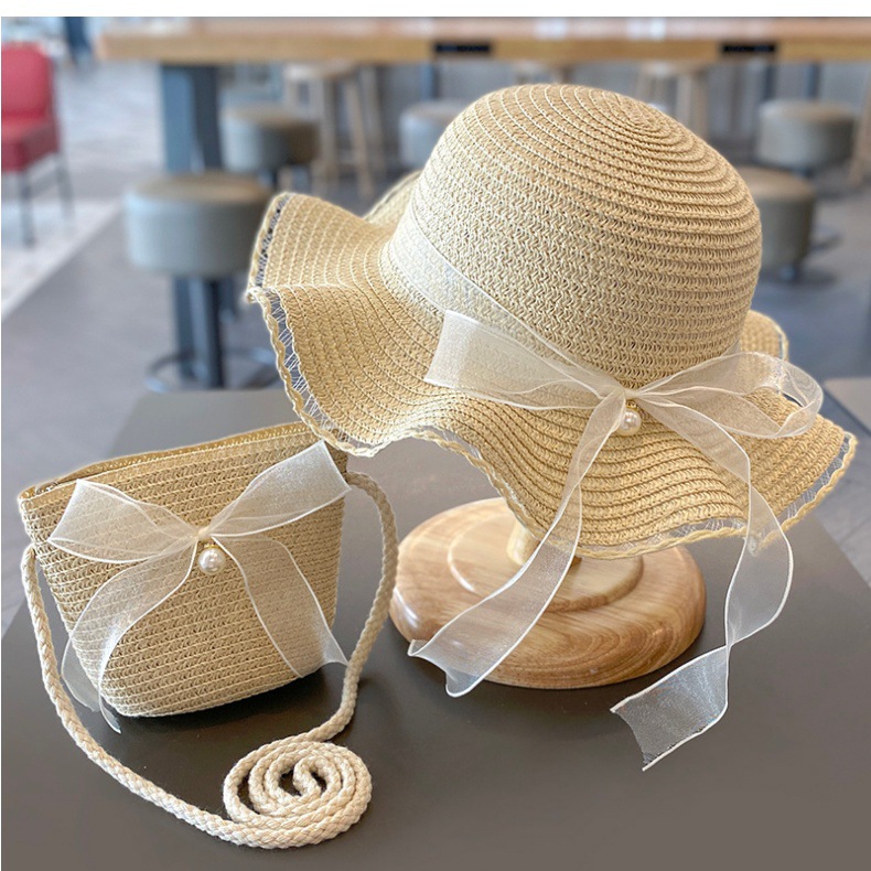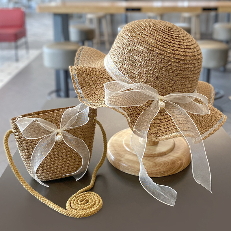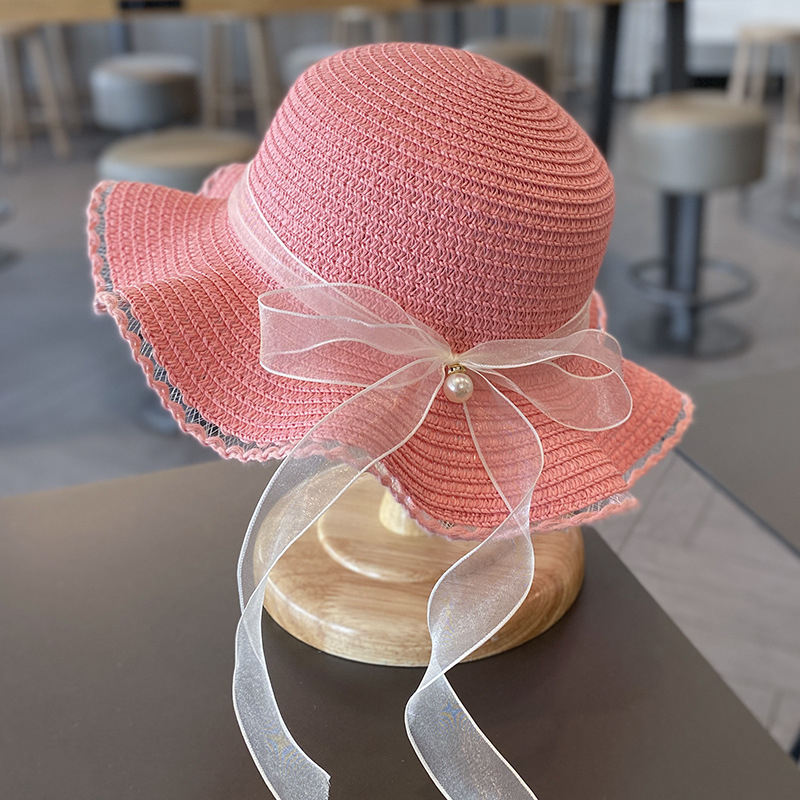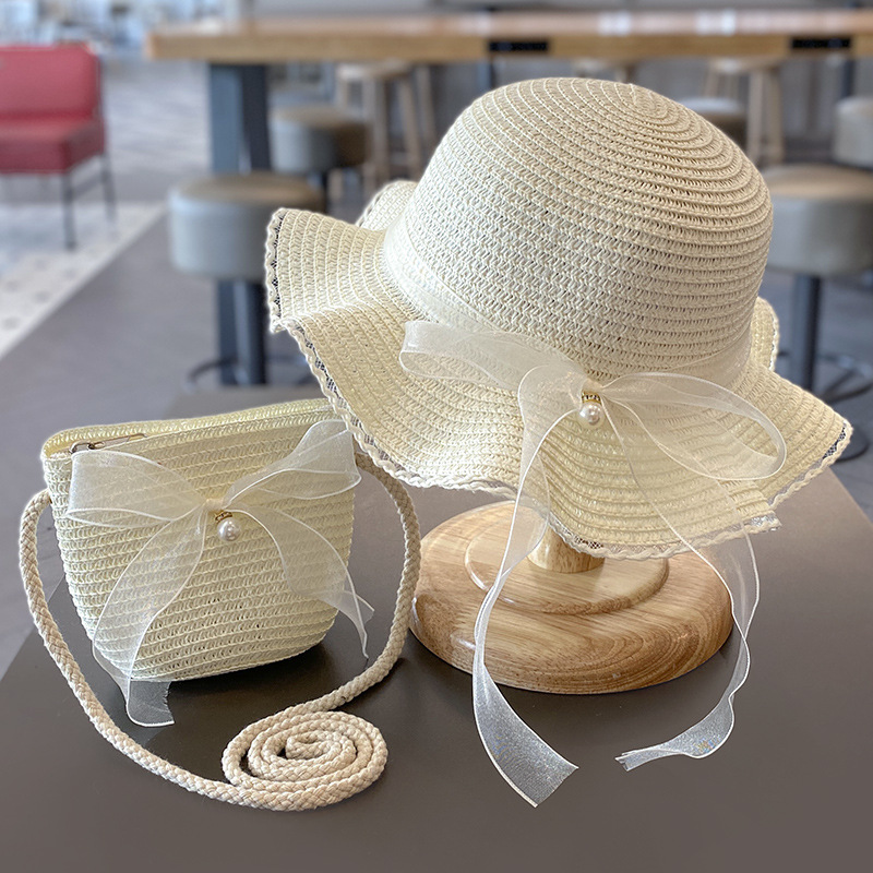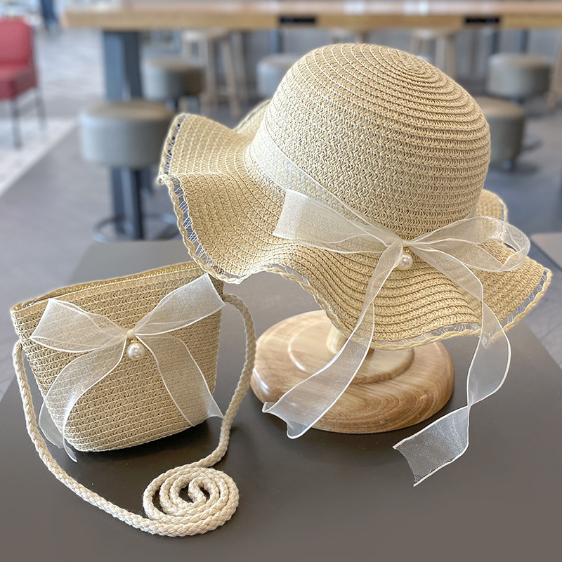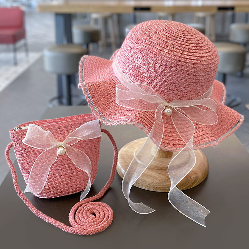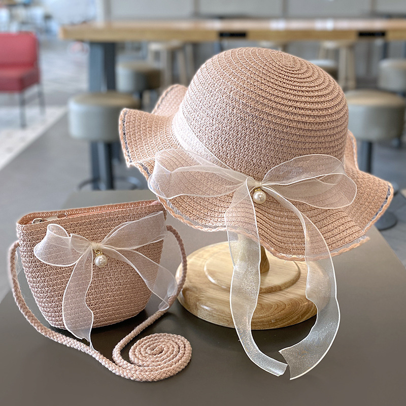 女孩夏季遮阳草帽女宝宝夏款出游沙滩渔夫帽儿童防晒太阳凉帽包夏