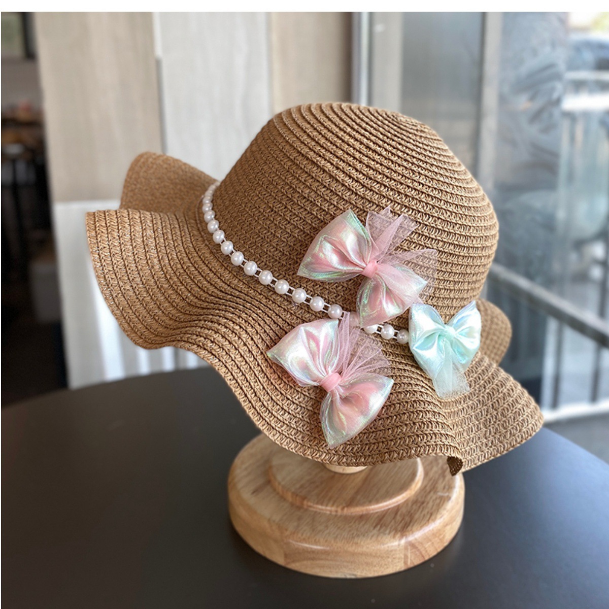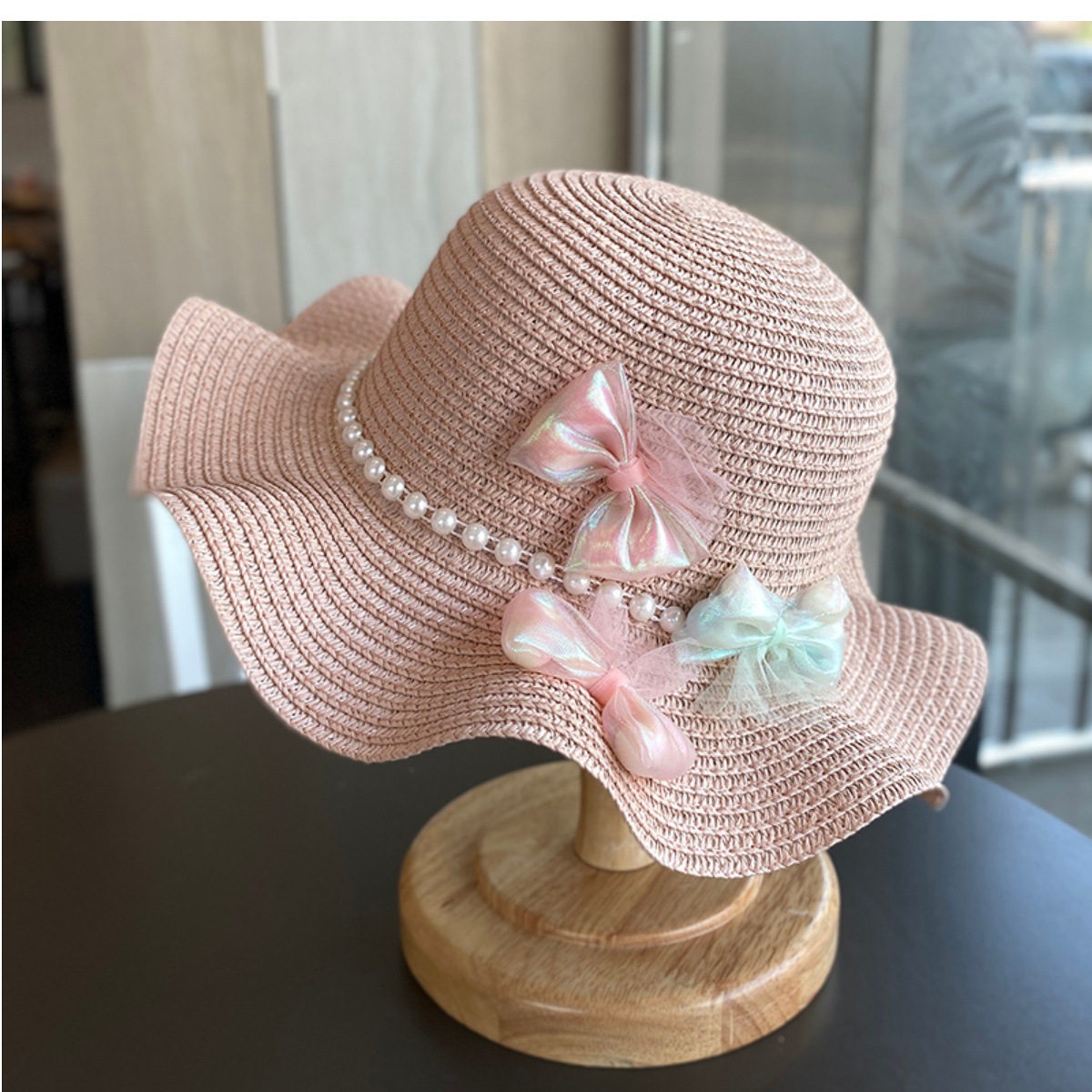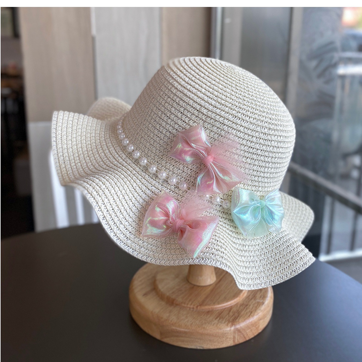 夏季女童帽子户外出游防晒遮阳帽小女孩沙滩大帽檐草帽女宝公主夏