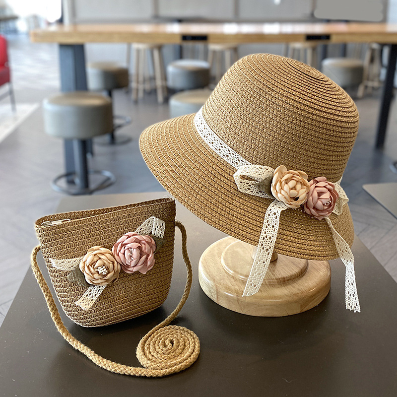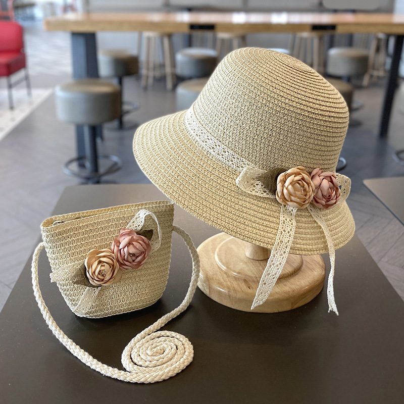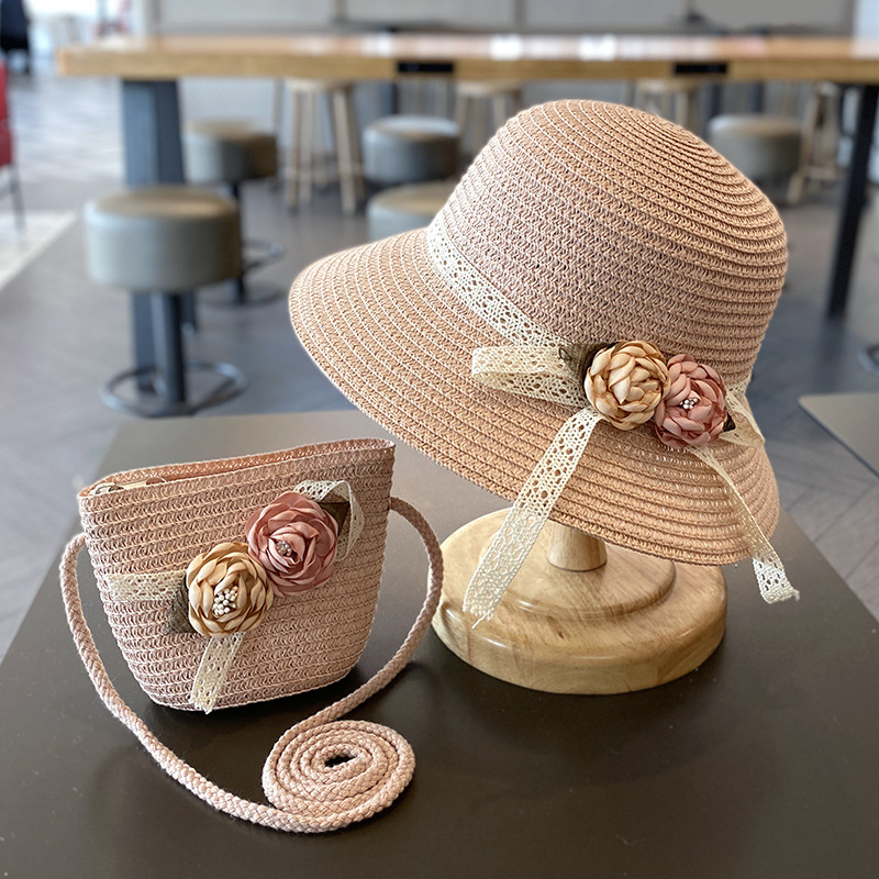 夏季小女孩帽子夏天女童沙滩海边女宝防晒遮阳帽女公主渔夫草帽夏