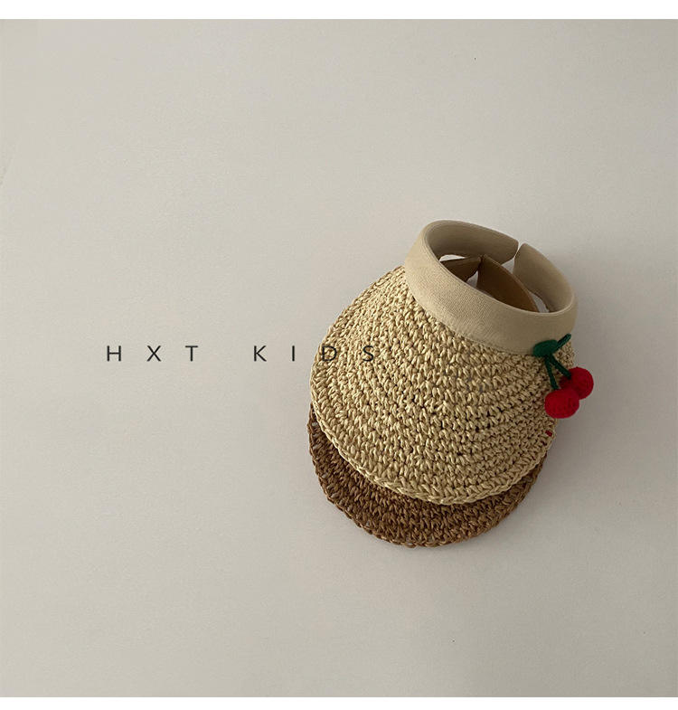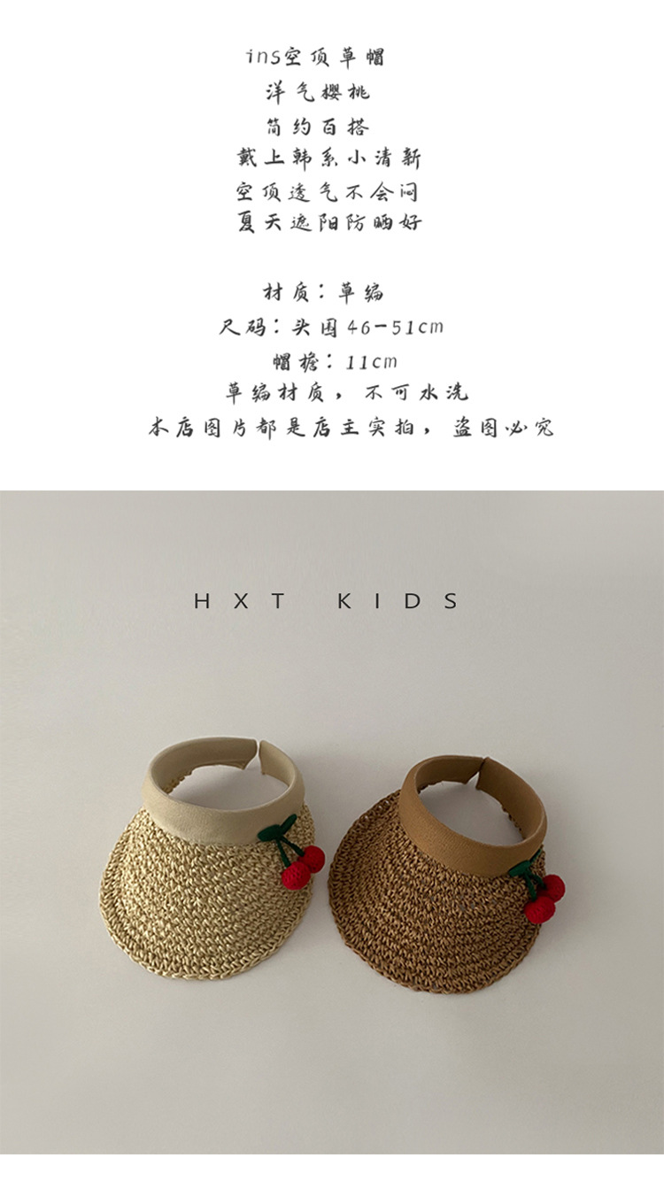 儿童空顶帽洋气小樱桃夏季发箍草帽女童宝宝大帽檐遮阳防晒帽潮夏