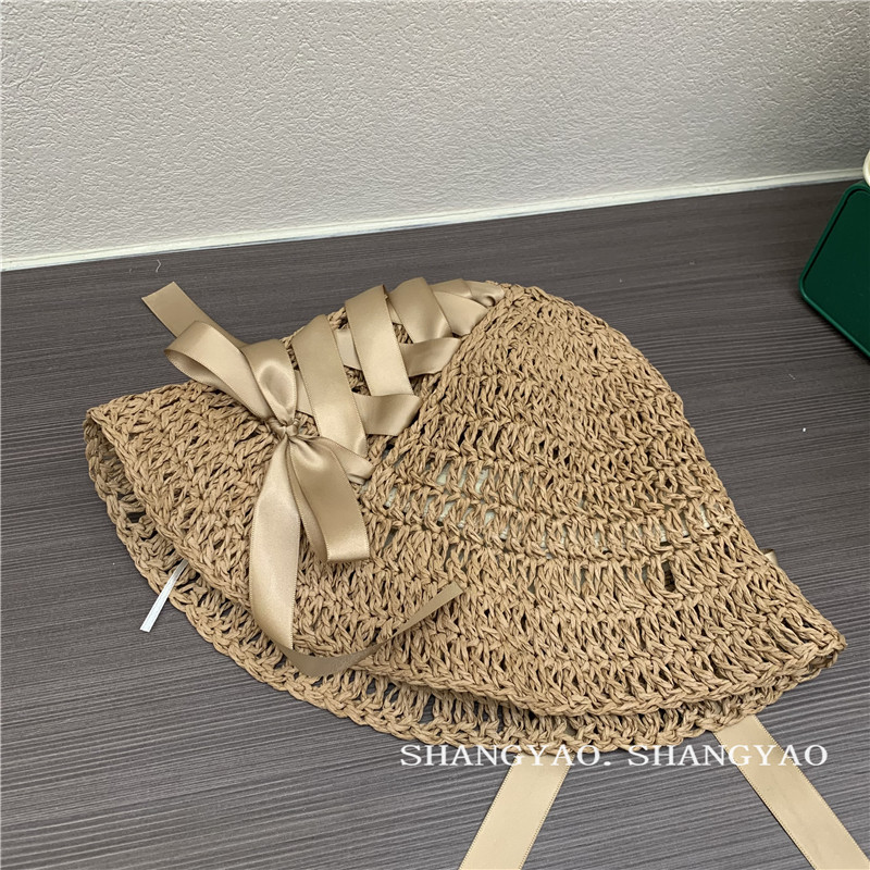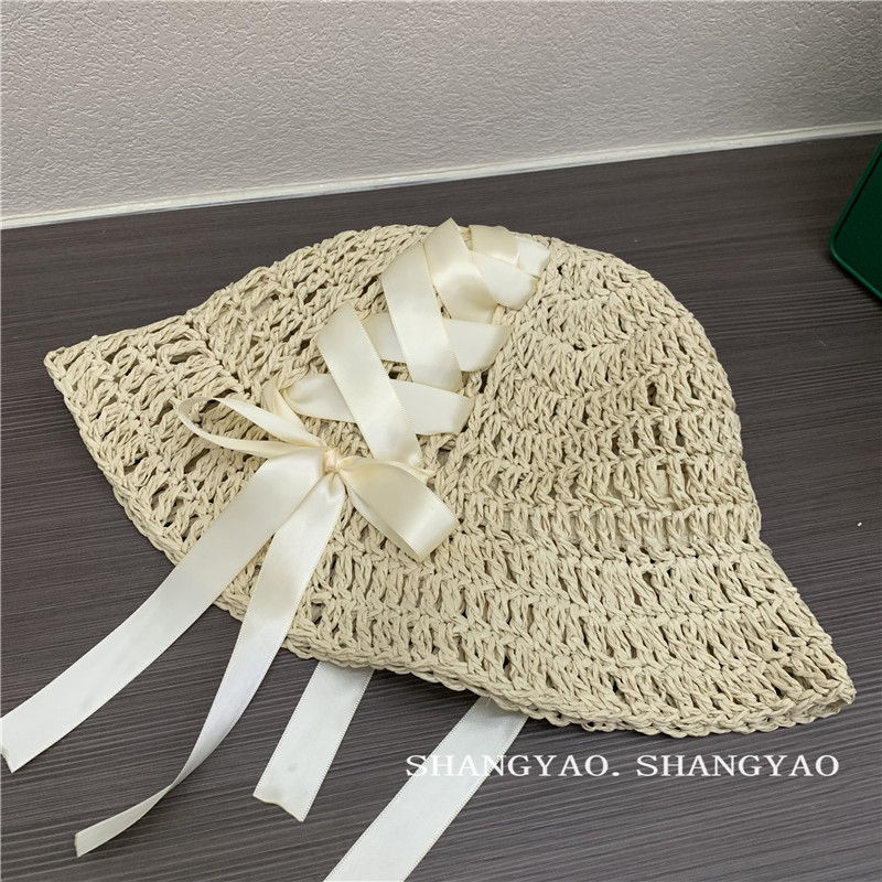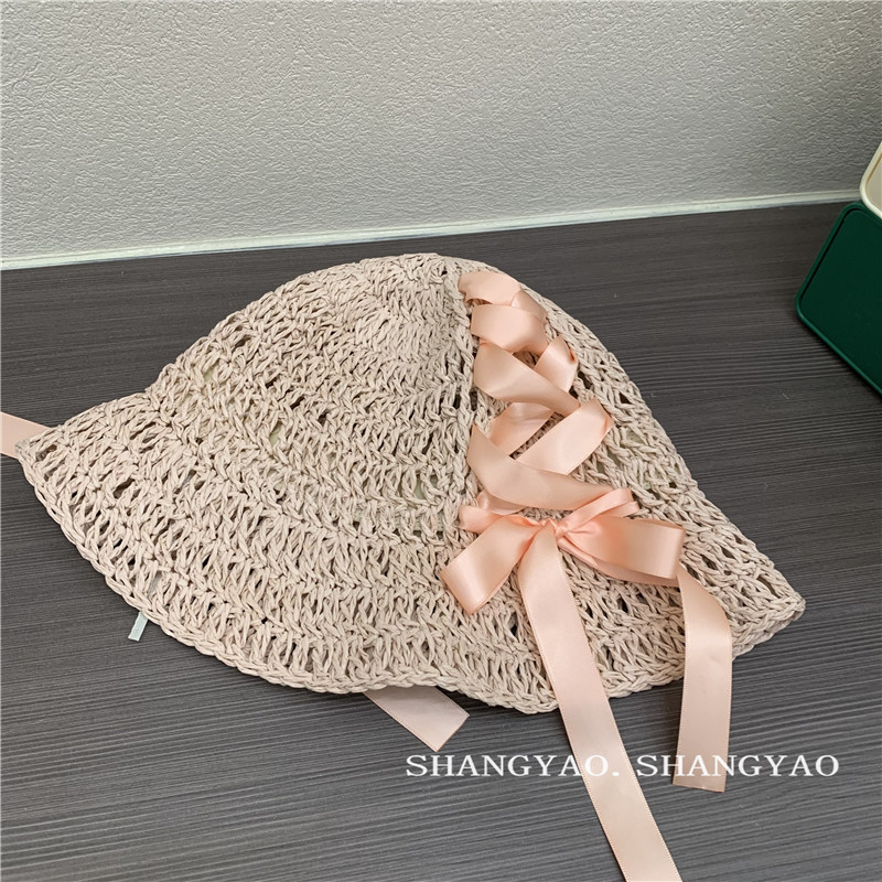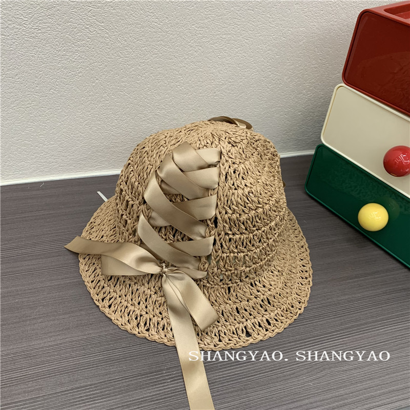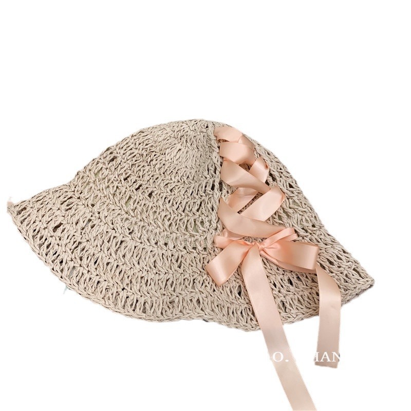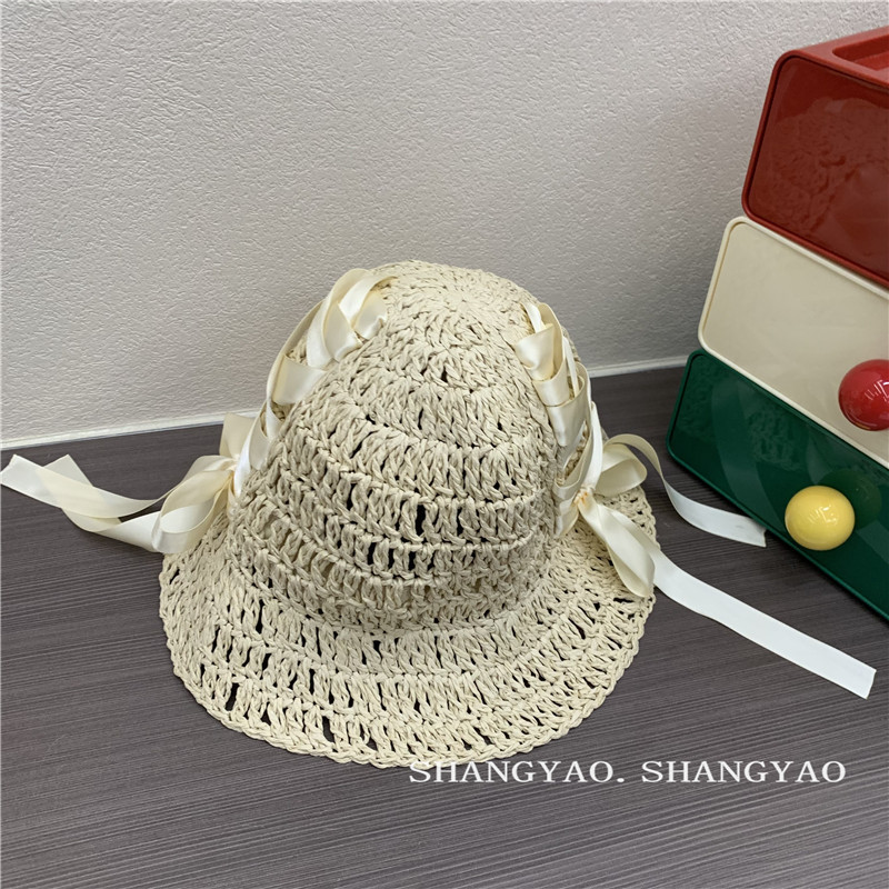 儿童帽子小清新森系草编渔夫帽夏季仙女风宝宝个性蝴蝶结绑带草帽