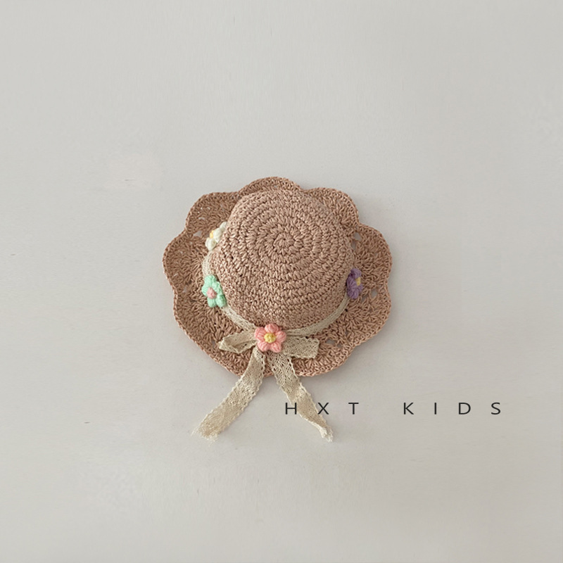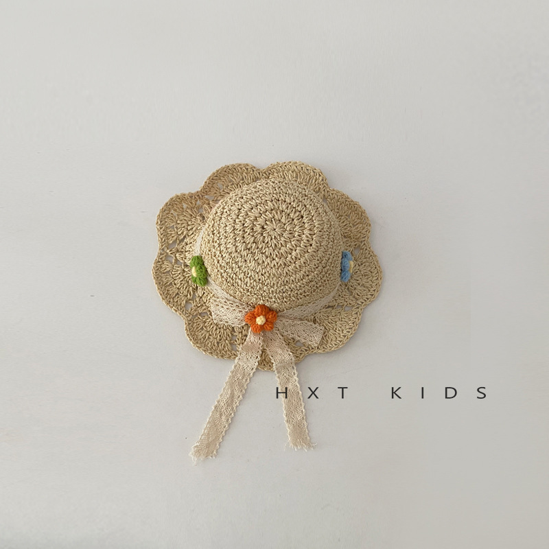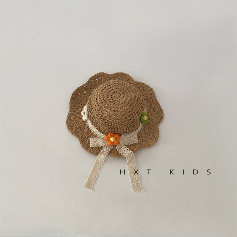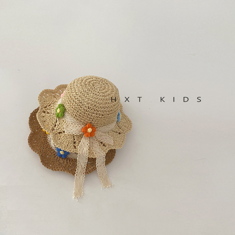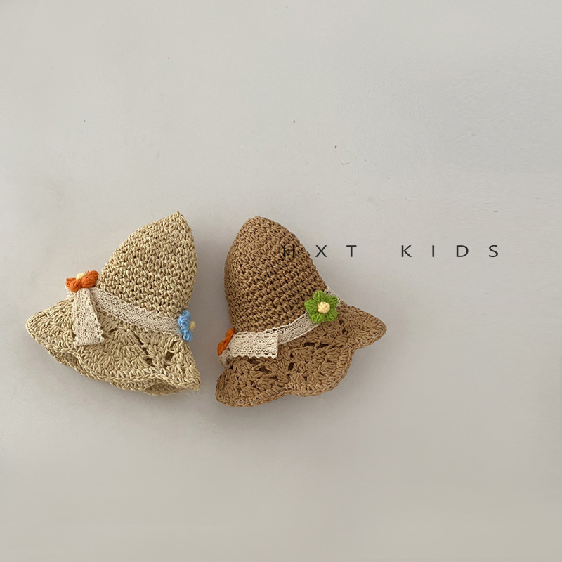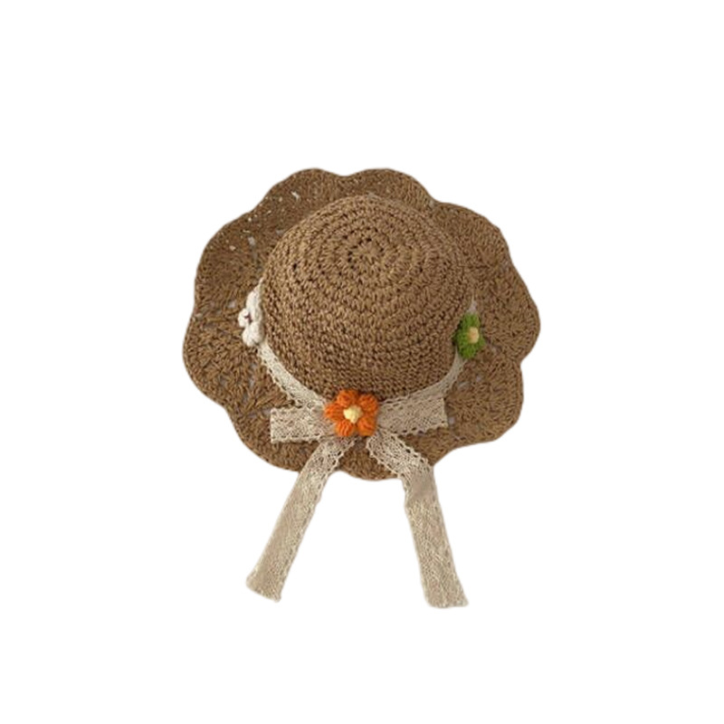 儿童草帽夏季遮阳蕾丝小花帽子婴儿宝宝公主可折叠沙滩海边防晒帽