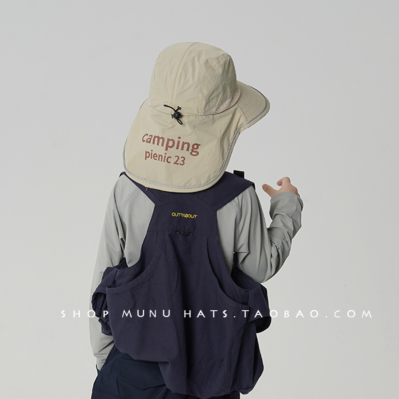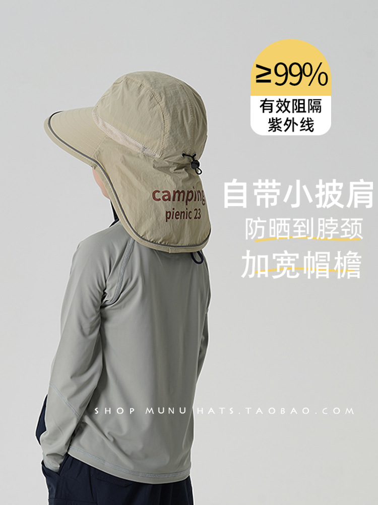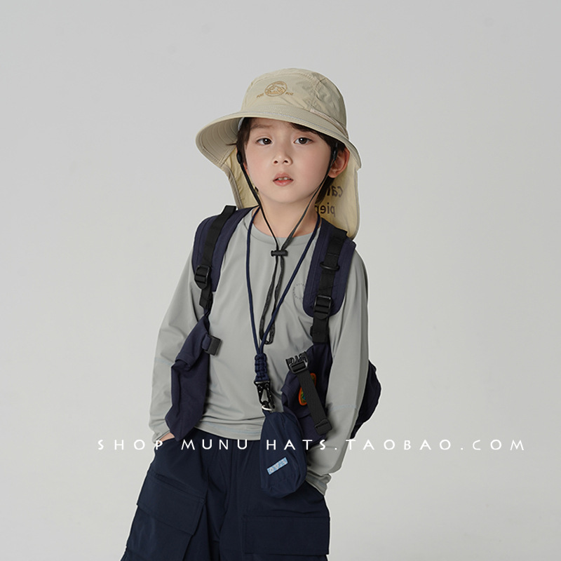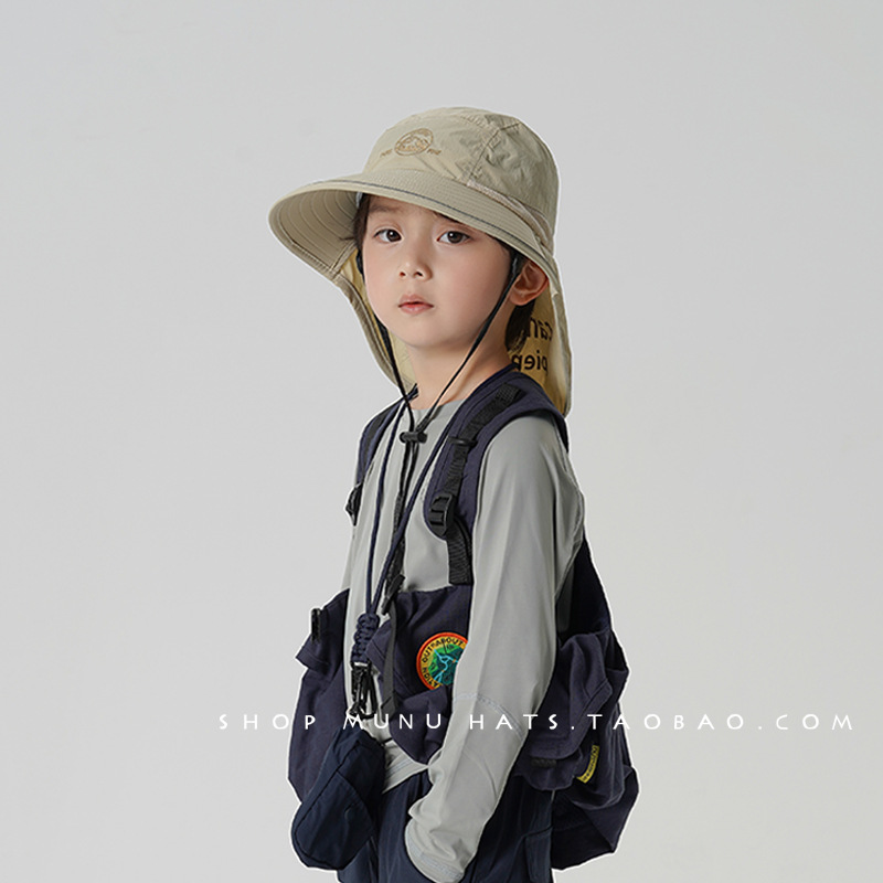 儿童帽子春夏薄款速干透气渔夫帽男女宝宝带披肩护颈大檐防晒帽潮